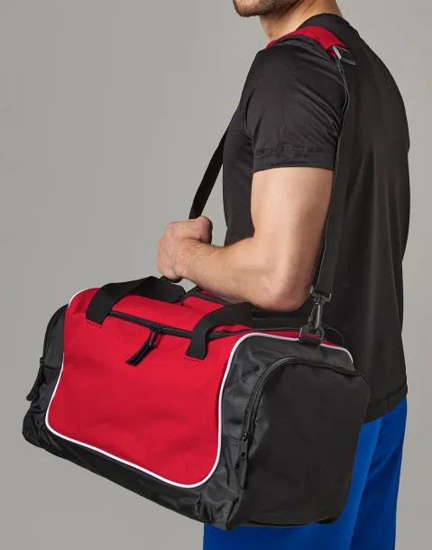 ·62% poliester (600D), 38% poliester (420D) ·Sportska torba napravljena kako bi odgovarala većini ormarića u svlačionicama ·Odvojiva i podstavljena naramenica ·Džepovi na uskim krajevima s patentnim zatvaračima, jedan od njih s mrežastim umetkom za ventilaciju ·Gumene nogice ·Prikladna za vez ·Volumen: 30 litara ·Dimenzije: 47 x 30 x 27 cm ·Površina za dekoraciju: 33 x 15 cm.