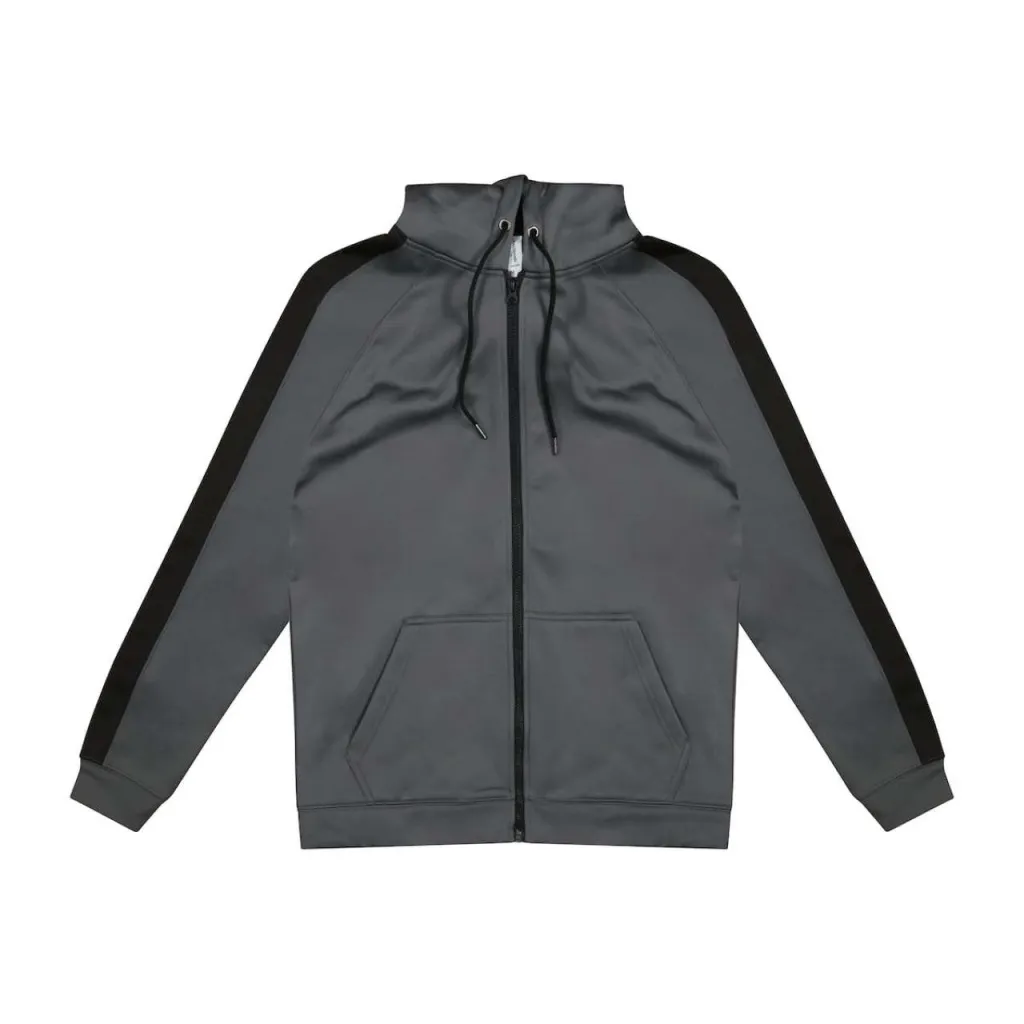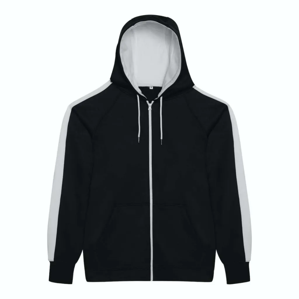 100% poliester. Sportski fit. Hoodie s potpunim patentnim zatvaračem. Dvostruki šavovi. Kontrastna vezica u kapuljači i plastični patentni zatvarač. Trokraka dvostruka kapuljača s unutarnjim kontrastom. Raglan rukavi s kontrastnom plaketom. Klokan džep. Četkani unutarnji flis. Etiketa koja se otkida čini proizvod savršenim za rebranding.