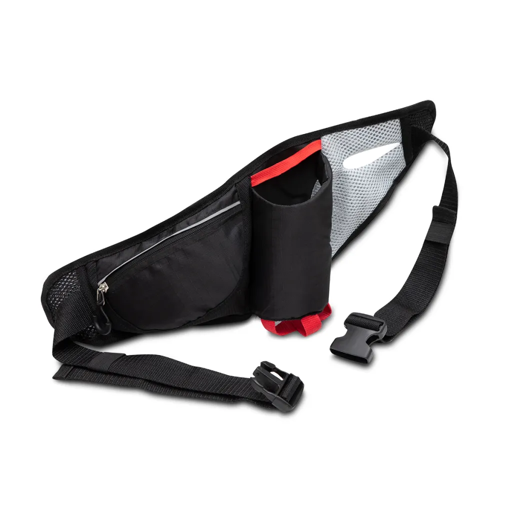 Sportski pojas koji vam omogućuje nošenje svega što vam je potrebno za planinarenje, trčanje ili hodanje. Opremljen posebnim čvrstim držačem za boce i džepom s patentnim zatvaračem za grickalice i mobitel. Dolazi s karabinerom, podesivim remenom i reflektirajućom trakom. Unutrašnjost je prekrivena elastičnom, mekom mrežicom koja pruža udobnost i prozračnost.