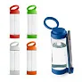 Staklena sportska boca s navojnim zatvaračem od PP-a. Sadrži držač za pametni telefon i ručku za lakši transport. Kapacitet do 390 ml. Isporučuje se u kutiji. ø61 x 181 mm