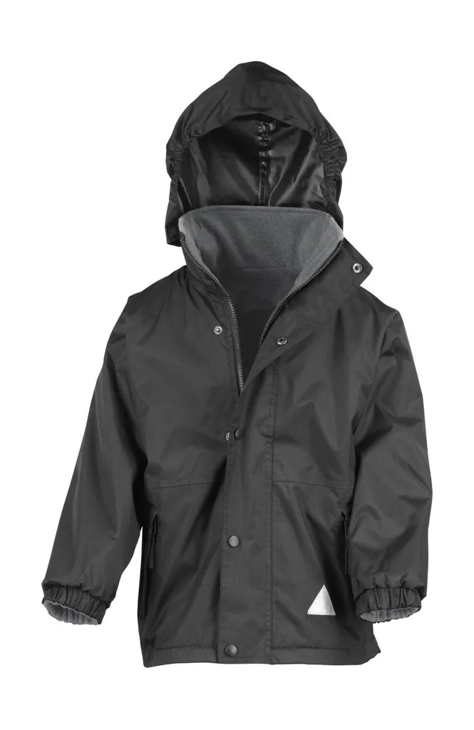 ·Vanjski sloj: 200 g/m², 100% poliester ·Preokrenuti dio: 280 g/m², 100 % poliester (antipilling flis) ·Otporna na vjetar i vodootporna (4,000 mm) ·Dvostruko prošiveni i lijepljeni šavovi ·Kapuljača skrivena u ovratniku s čičak trakom ·Preokrenuti patentni zatvarač sa zaklopkom protiv vjetra s drukerima ·Elastične manžete ·Bočni džepovi s patentnim zatvaračima, etiketa u džepu za ime i razred ·Pristup za dekoraciju na donjem rubu ·Prikladna za: vanjski sloj: vez, direktni tisak, digitalni transfer tisak, sitotisak; preokrenuti dio: vez, digitalni transfer tisak.