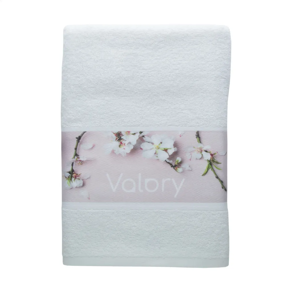 Frotirni ručnik od 100% pamuka, težine 400 g/m² s poliesterskim rubom za sublimacijski tisak. Cijena tiska uključena u cijenu. Minimalna količina narudžbe: 50 komada.