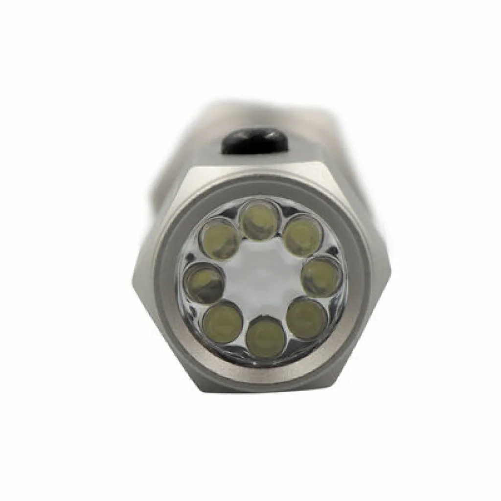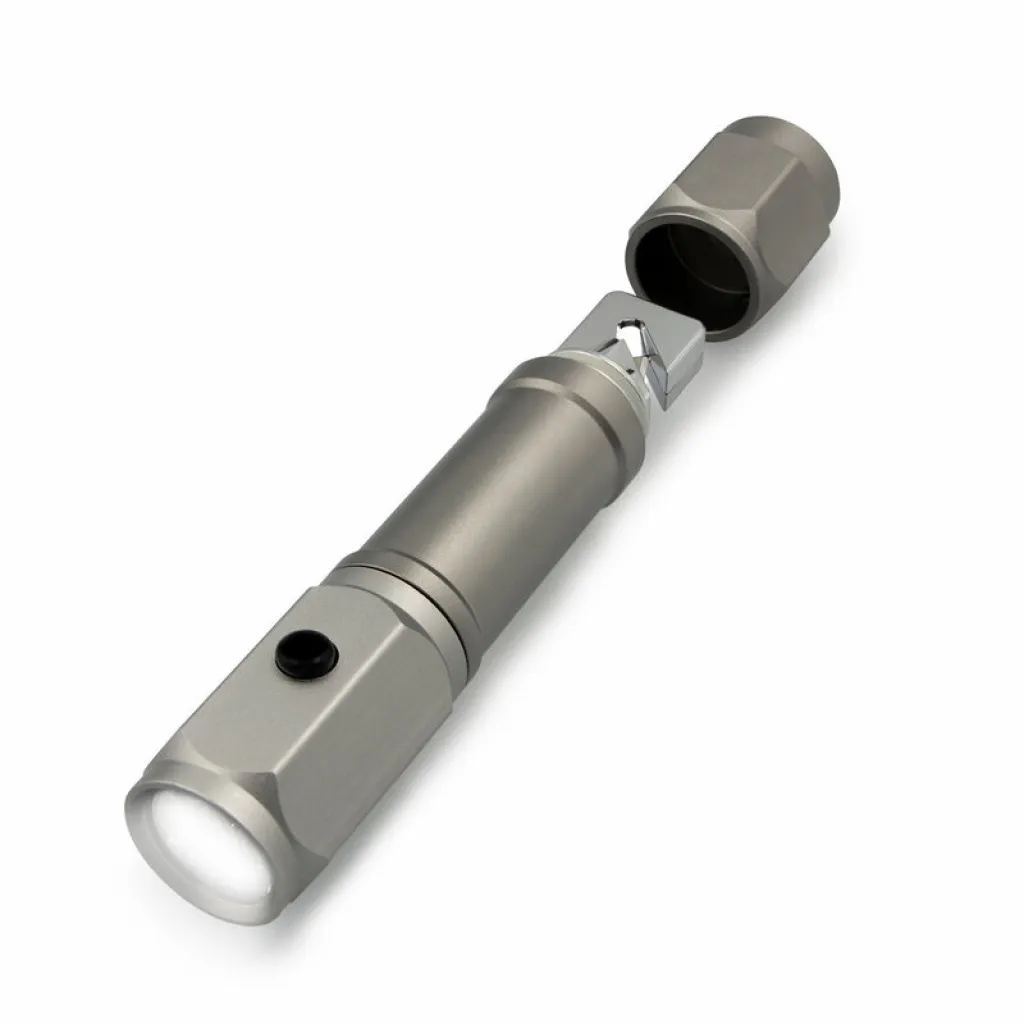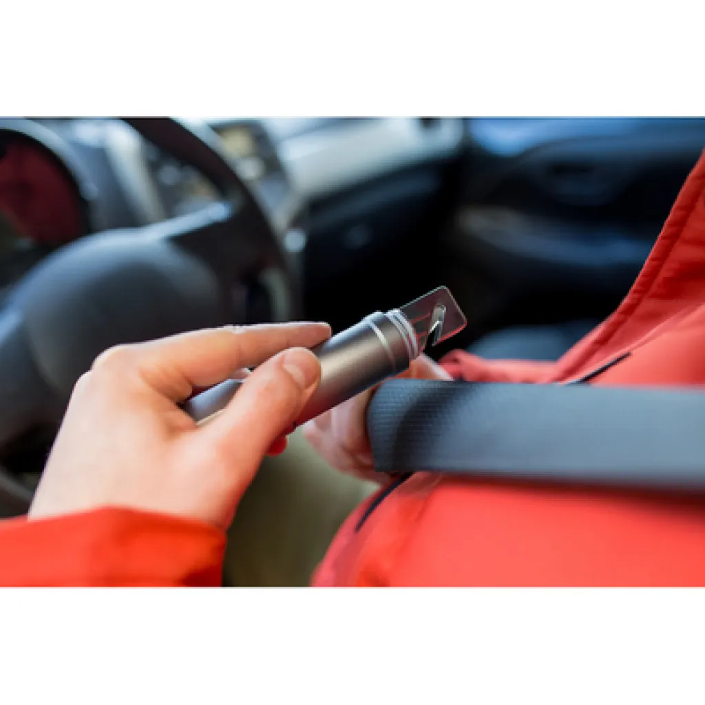 Svjetiljka za hitne slučajeve, sa 60 lumena svjetlosti, funkcijama sigurnosnog čekića i rezača sigurnosnog pojasa. Proizvod izrađen od aluminija.