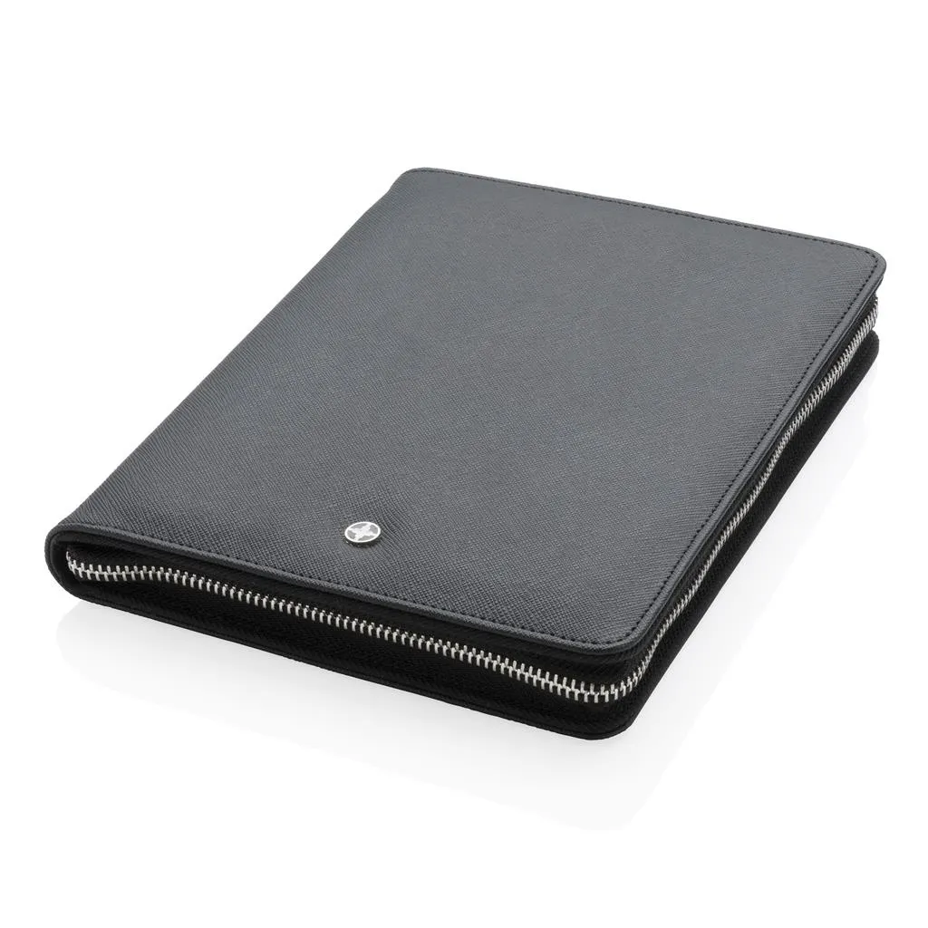 Swiss Peak Heritage kolekcija je primjer moderne elegancije. S koricom od jedinstvene talijanske umjetene kože s luksuznim srebrnim zatvaračem. Sadrži držač za mobitel, držače za gadgete te pretince za posjetnice, bilješke i papire. Uključuje i A5 blok.