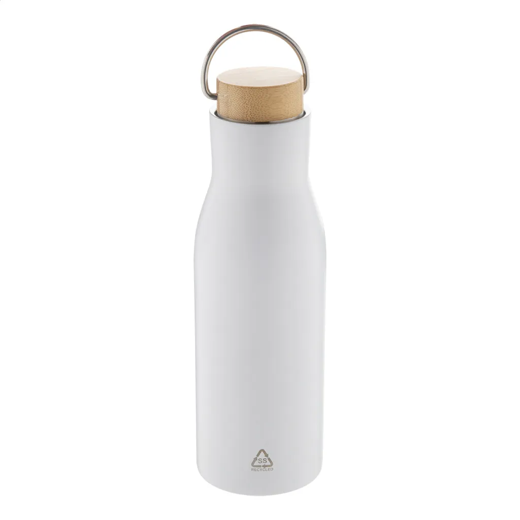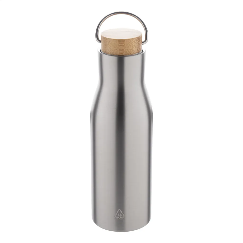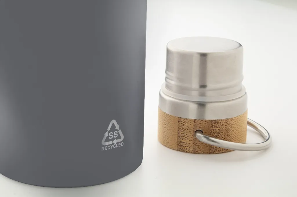 Dvostruka stjenka, vakuumski izolirana boca od recikliranog nehrđajućeg čelika s poklopcem od bambusa, 500 ml.
