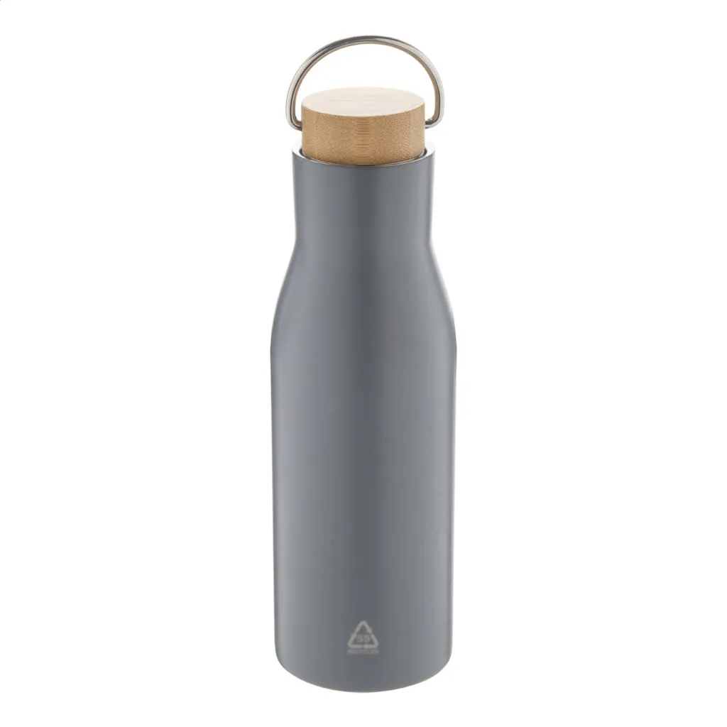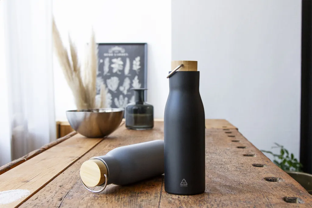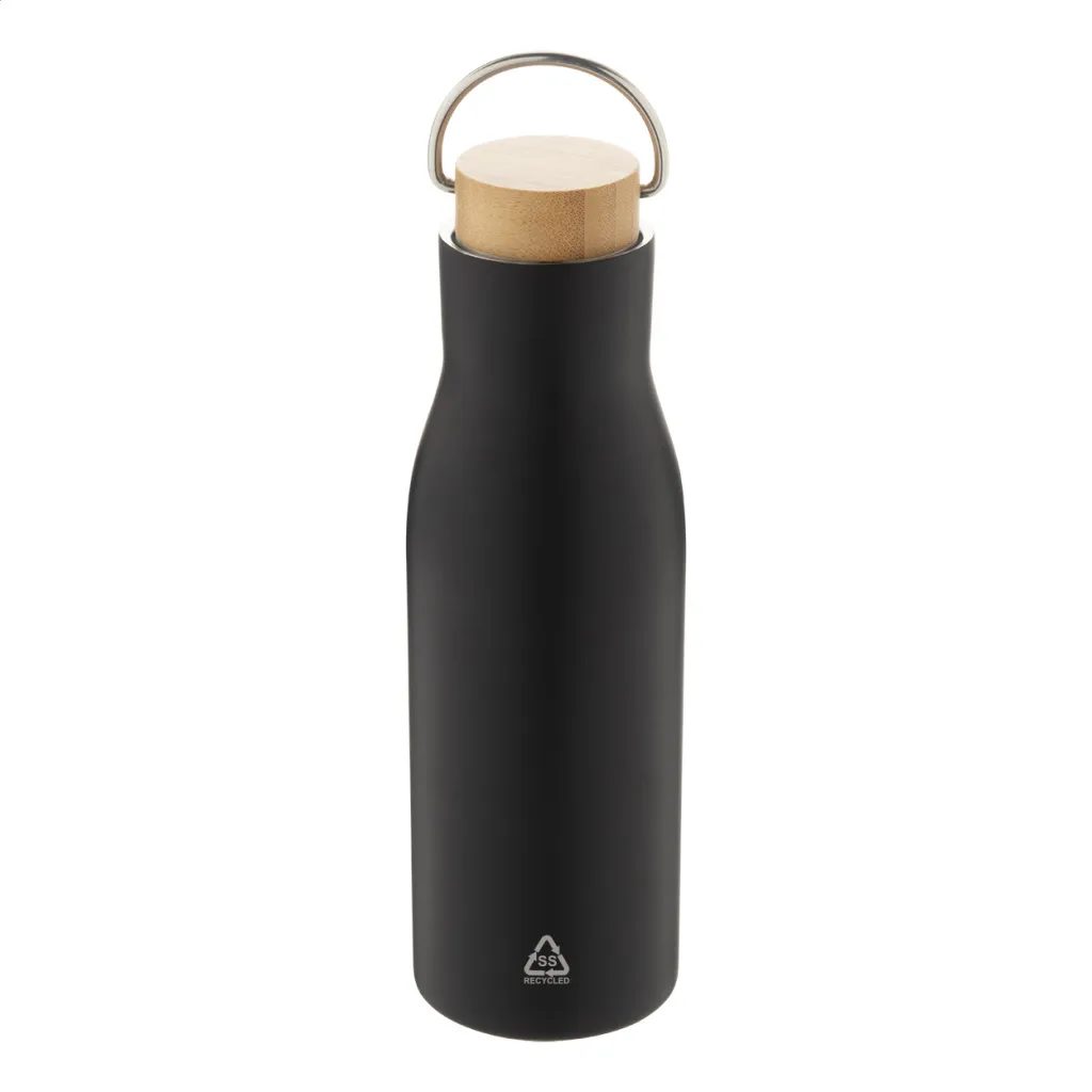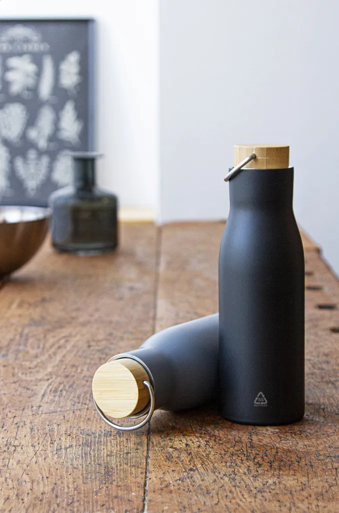 Dvostruka stjenka, vakuumski izolirana boca od recikliranog nehrđajućeg čelika s poklopcem od bambusa, 500 ml.