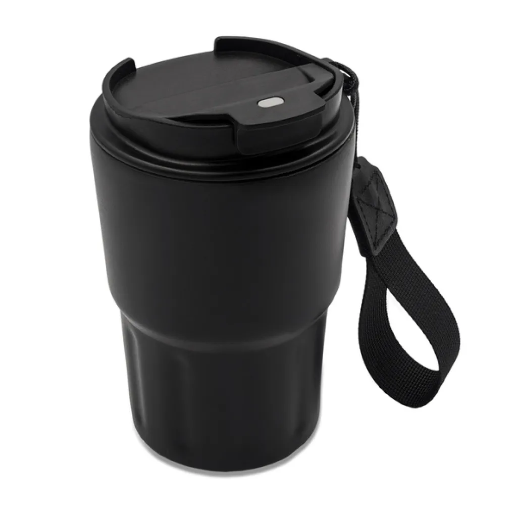 Termo šalica zapremnine 330 ml. Dvostruke stijenke od nehrđajućeg čelika, unutarnji sloj od visokokvalitetnog čelika 18/8. Vakuum između stijena pruža izvrsnu toplinsku izolaciju. Remen za jednostavno nošenje. Održava temperaturu iznad 40°C do osam sati.