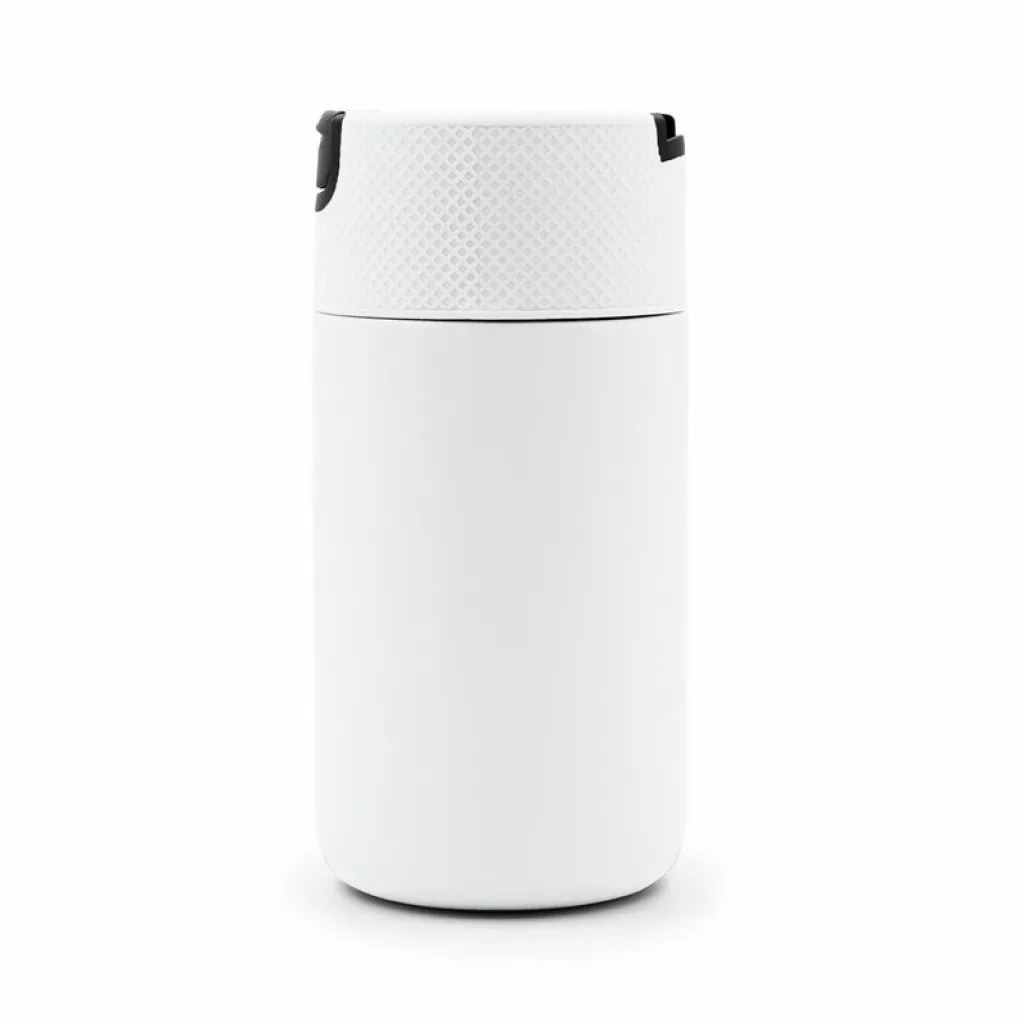 Termo šalica kapaciteta 400 ml s dvostrukim vakuum stijenkama od nehrđajućeg čelika izvana i iznutra, plastičnim poklopcem i mat završnom obradom. Prikladna za rukovanje jednom rukom. Klasa toplinske izolacije: C + nepropusno.