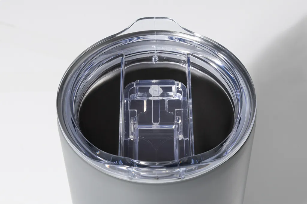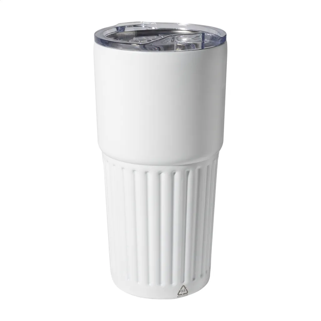 Termo šalica s dvostrukom stijenkom, izolirana od recikliranog nehrđajućeg čelika s poklopcem za piće od ABS plastike. Kapacitet: 600 ml.