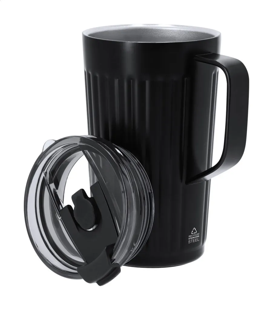 Dvostruka termo šalica s poklopcem za piće, izolirana od recikliranog nehrđajućeg čelika, 350 ml.