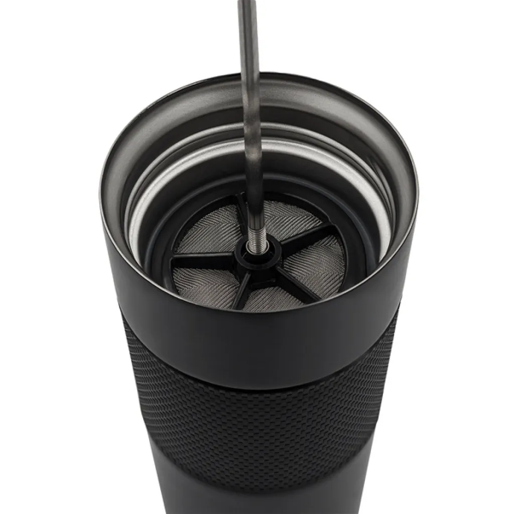 Termos šalica s kapacitetom od 450 ml. Savršen je spoj French Press aparata i termos šalice. Dvije stijenke od nehrđajućeg čelika, unutrašnjost od poboljšanog čelika 18/8. Vakuum između stijenki pruža vrlo dobre svojstva termalne izolacije. Održava temperaturu iznad 40°C do šest sati.