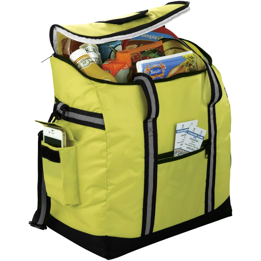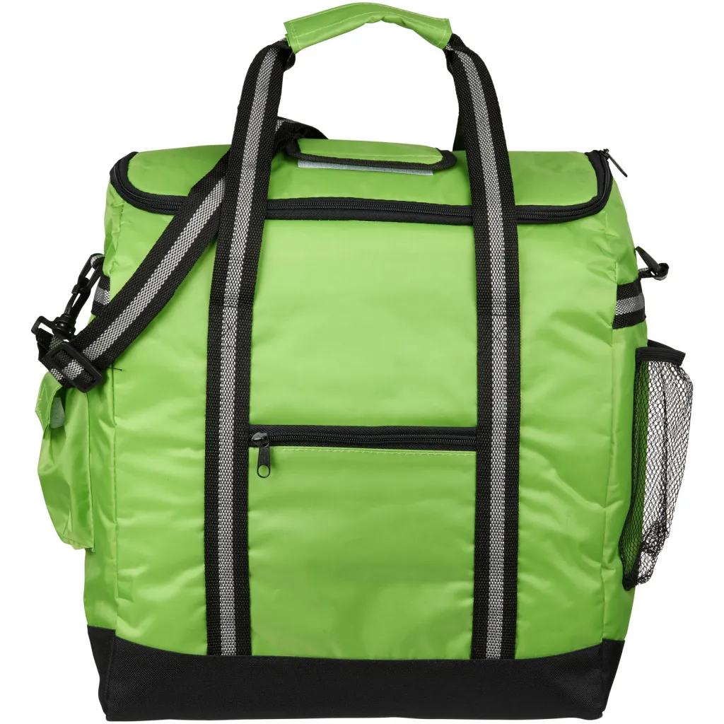Glavni pretinac s patentnim zatvaračem. Prednji džep s patentnim zatvaračem. Bočni mrežasti džep. Bočni džep sa zatvaračem čičak. Dvostruko ojačane ručke za nošenje. Uklonjiva, podesiva naramenica. PEVA izolacija. Pribor nije uključen. 70D najlon.