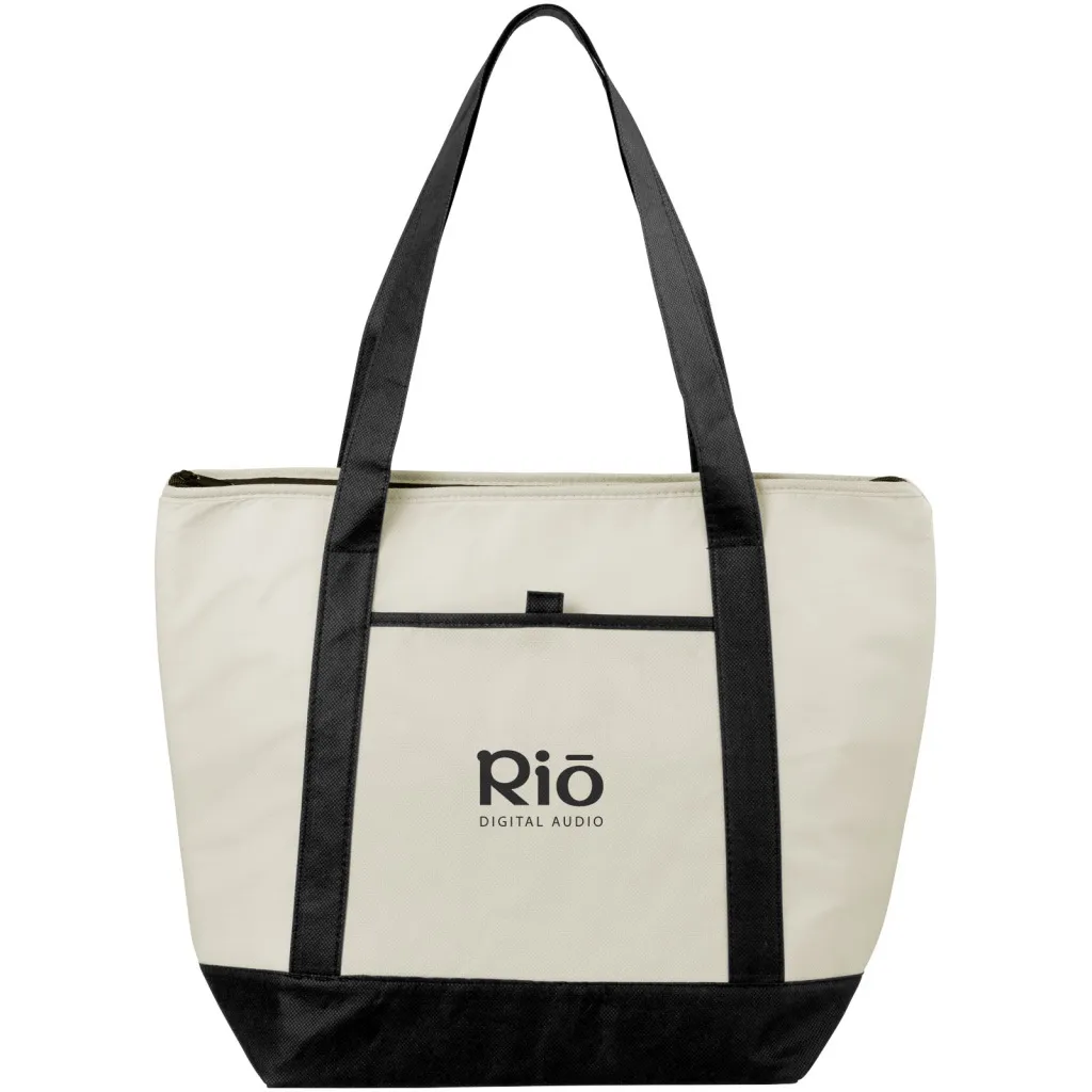 Glavni pretinac s patentnim zatvaračem i dvije ručke od 28 cm. Otvoreni prednji džep s utorom za olovkom. Pribor nije uključen. Netkana 80 g/m² PP plastika.