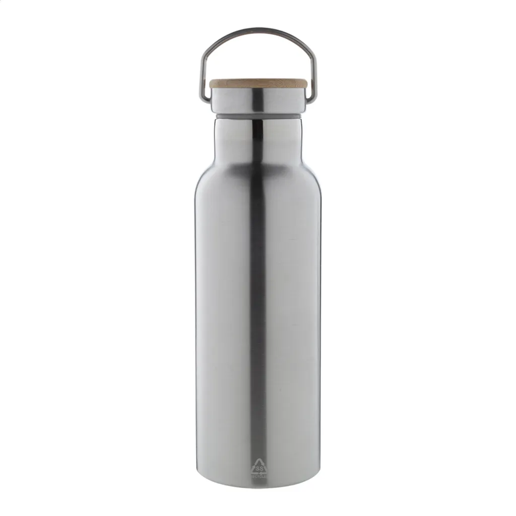 Vakuumski izolirana boca s dvostrukom stijenkom od recikliranog nehrđajućeg čelika, s poklopcem od bambusa. 500 ml.