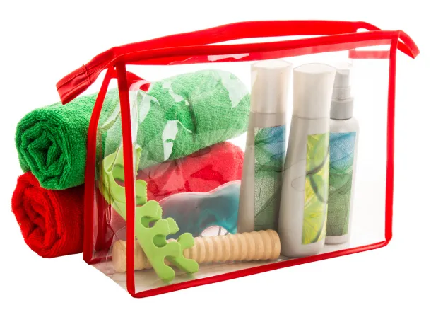 Prozirna kozmetička torbica/neseser s patentnim zatvaračem.