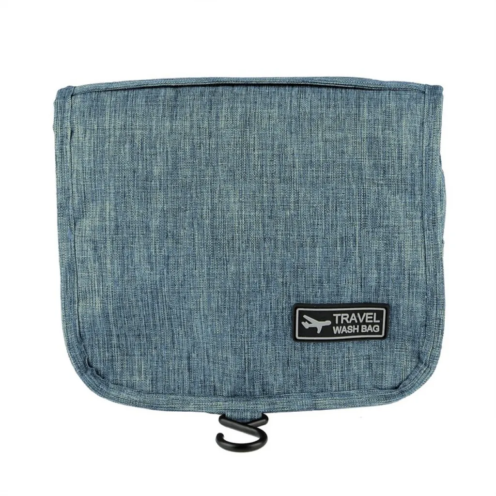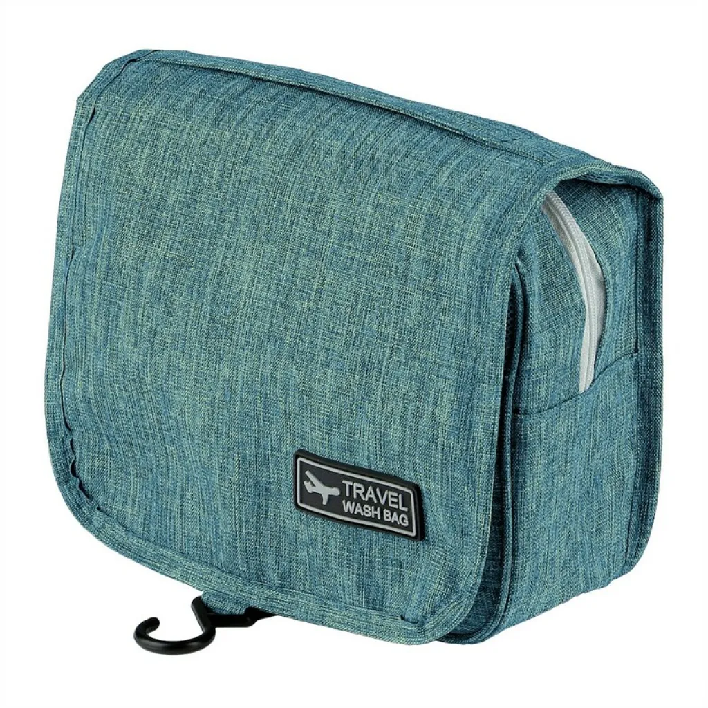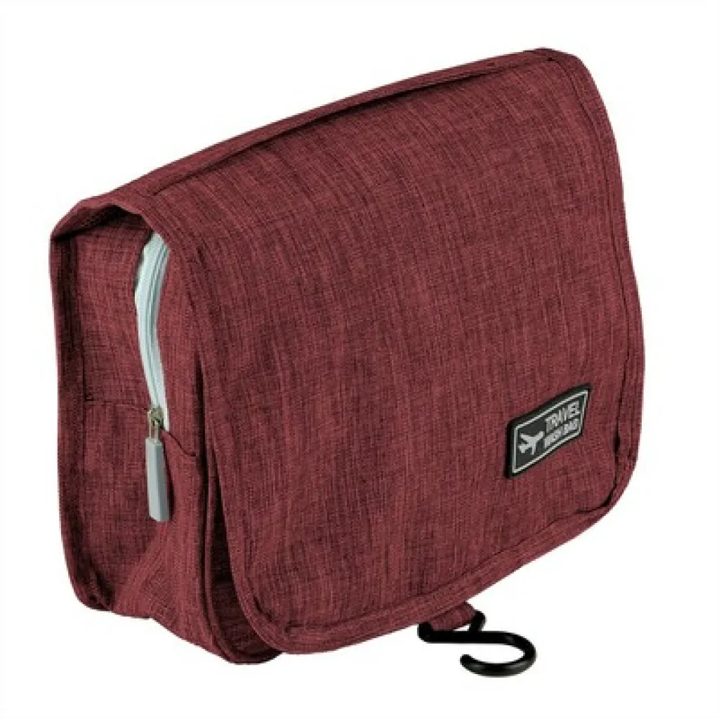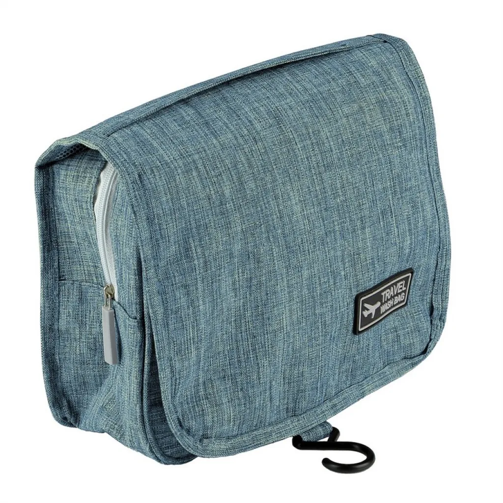Toaletna torbica s više pretinaca, glavnim pretincem s patentnim zatvaračem, 1 mrežastim džepom, prednjim prozirnim džepom s patentnim zatvaračem i kukicom za vješanje.