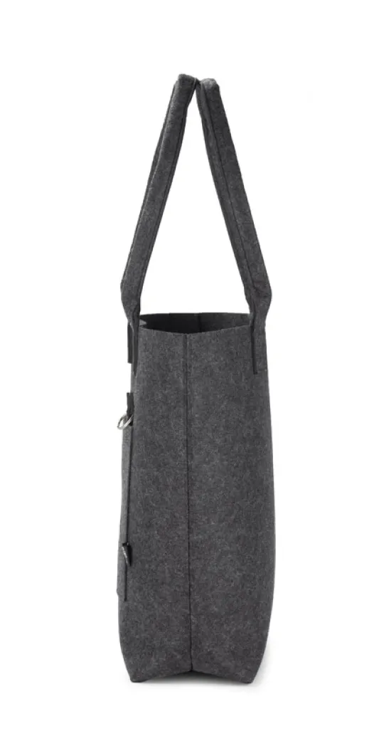 Torba od filca MARRTO funkcionalna je, lagana i praktična. Može se koristiti kao svakodnevna torba ili kao torba za kupovinu. Ima udobne, dugačke ručke i prošireno dno, dodatni džep, što ga čini vrlo lakim za pakiranje. Priloženi privjesak za ključeve od filca lijepo nadopunjuje proizvod. Izrađena je od recikliranog rPET filca.