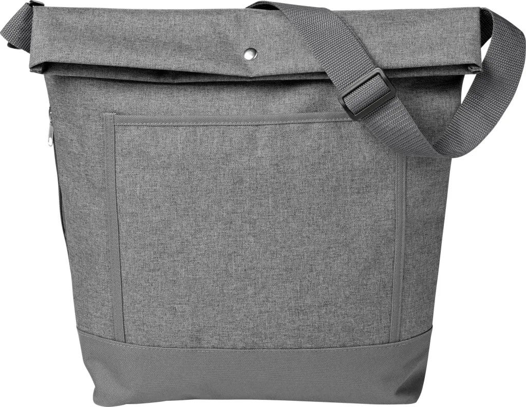 Ženska torba od poliesterske platnene tkanine (Poly canvas, 600D) s preklopivim rubom s gumbom, malim džepom na prednjoj strani i podesivim remenom za rame.