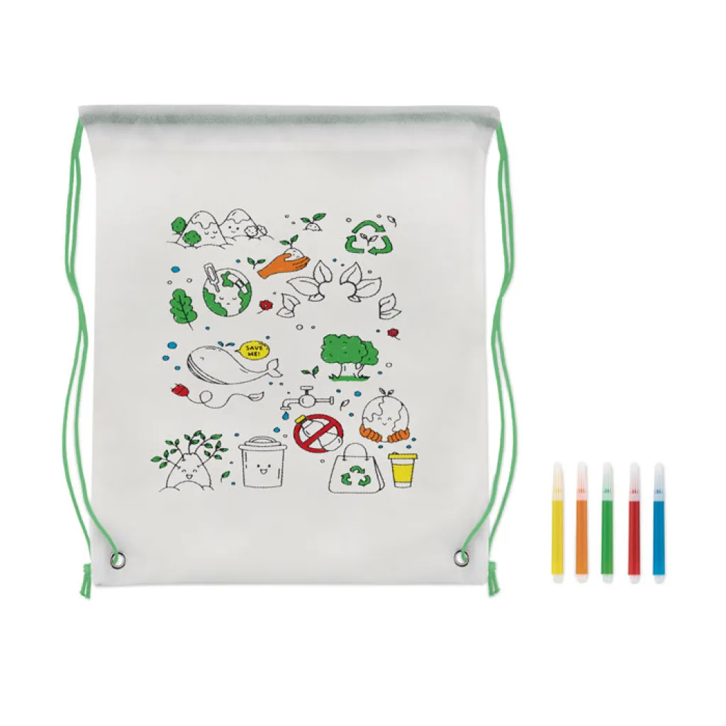 Torba s vezicama / bojanka napravljena od netkanog materijala s 5 flomastera. 80 gr/m².