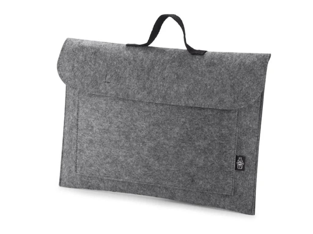 Elegantna torbica za laptop TARO izrađena od recikliranog rPET filca. Torbica je praktična i lagana i u nju može stati prijenosno računalo od 15". Dodatni džep omogućuje spremanje dokumenata ili sitnica. Ručka je udobna za nošenje. Kopčanje na čičak.