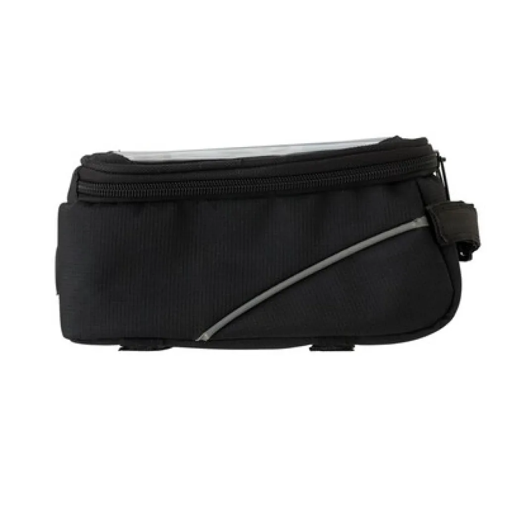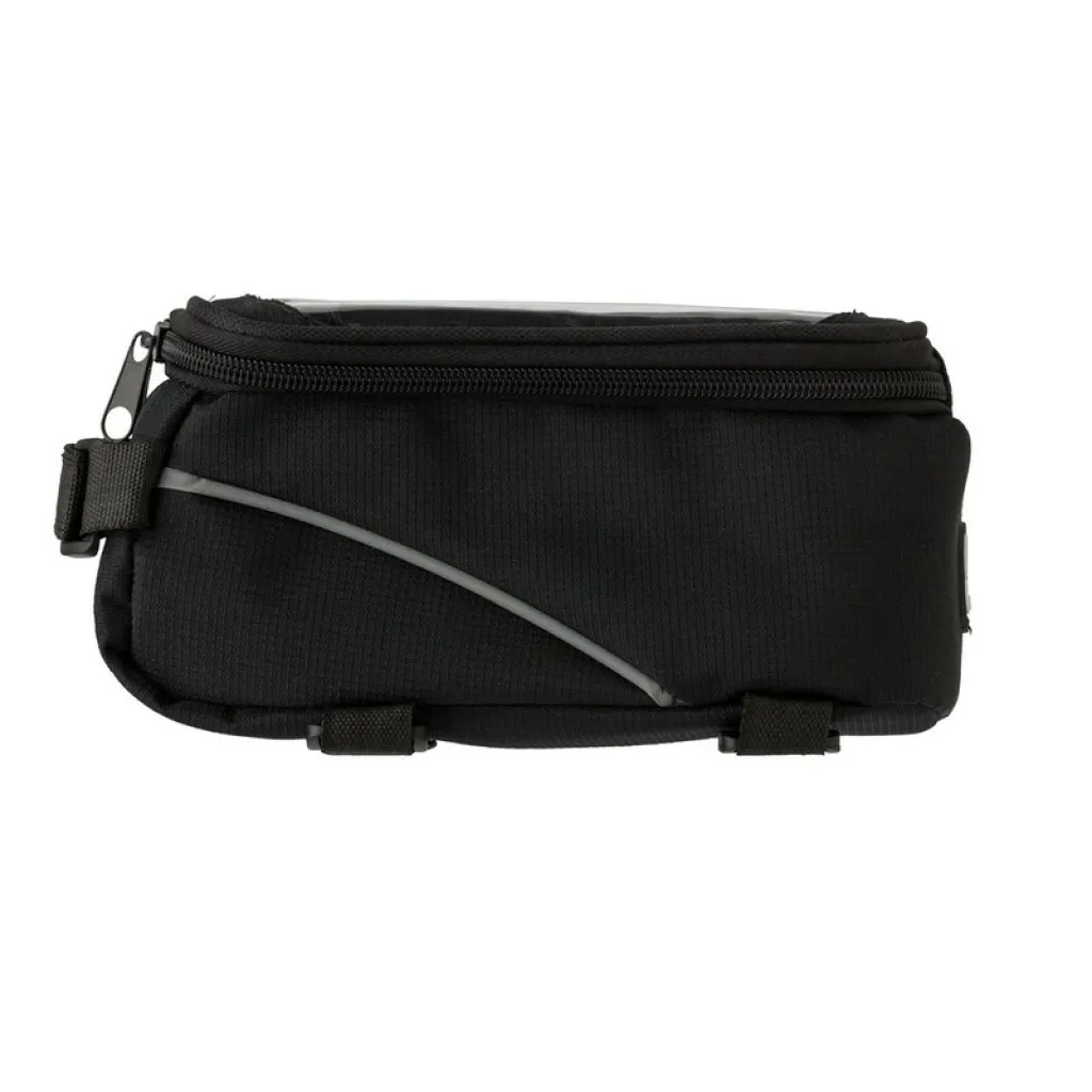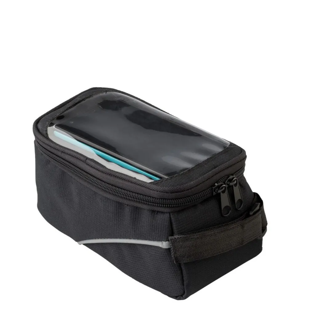 Torba za ručku za bicikl, glavni pretinac s patentnim zatvaračem, odvojeni pretinac na vrhu za mobitel, otvor za slušalice, čičak trake za pričvršćivanje.
