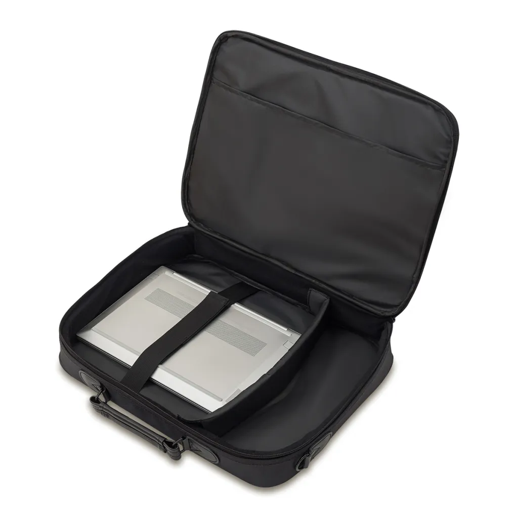 Torba za laptop od poliestera 1680 D. Dolazi s tri džepa i mnogo pretinaca za dokumente. Kada nosite prijenosno računalo manje veličine, dobit ćete dodatni prostor za dodatke u glavnom pretincu