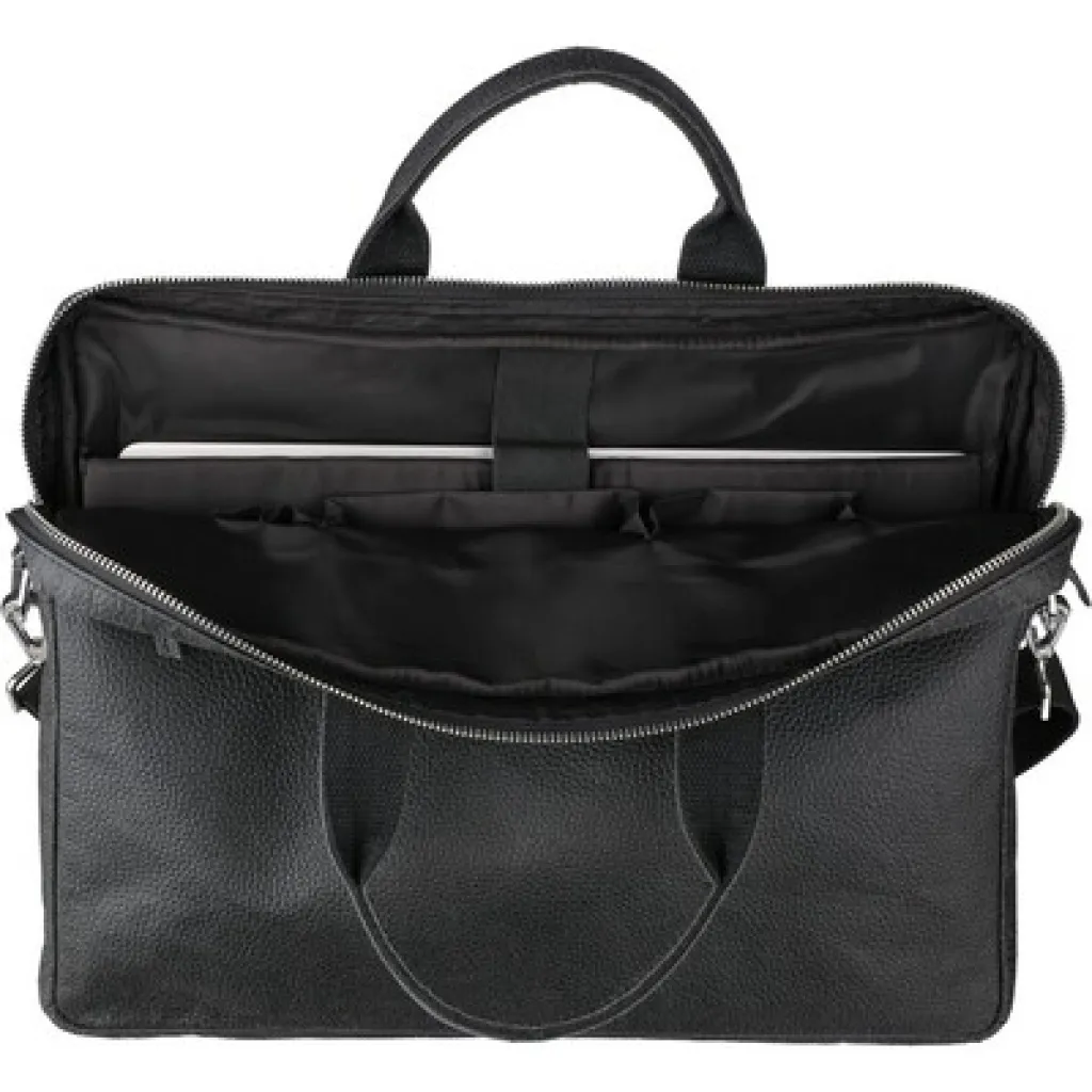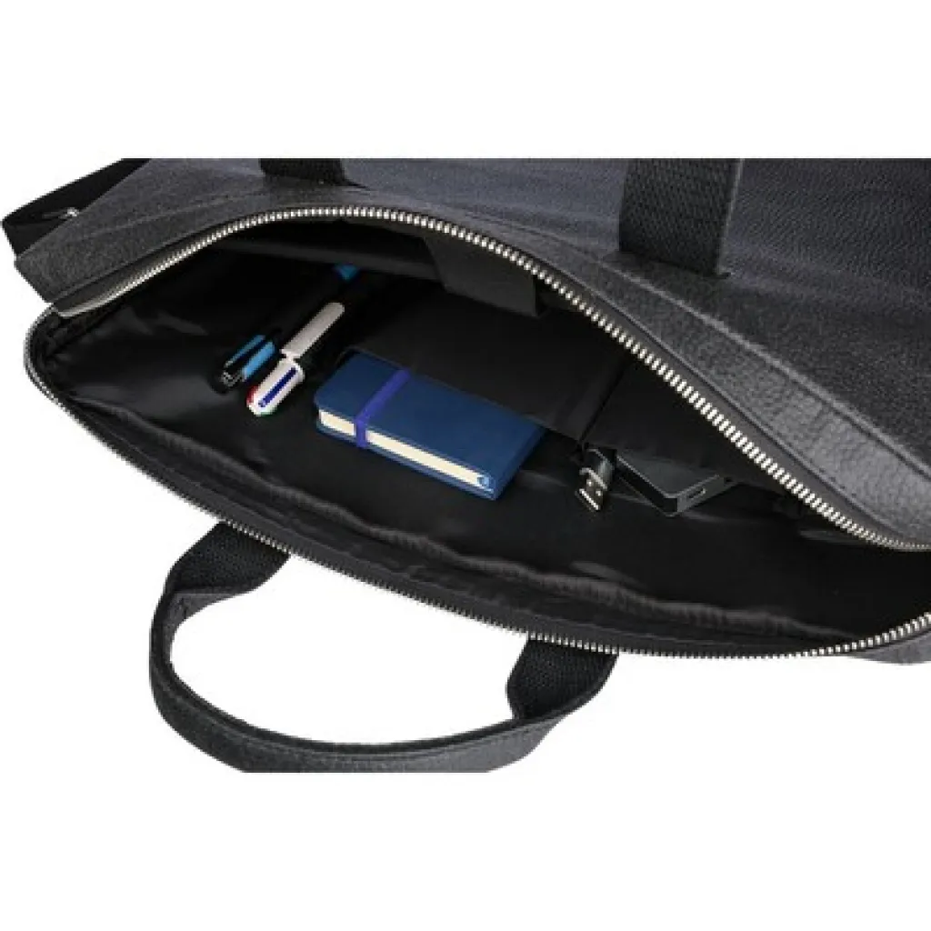 Torba za prijenosno računalo od 15" s prednjim pretincem na patentni zatvarač, velikim pretincem na patentni zatvarač na gornjoj strani s podstavljenim džepom za prijenosno računalo s kopčanjem na čičak i nekoliko malih džepova, proizvod izrađen od veganske kože (koža od rajčice)