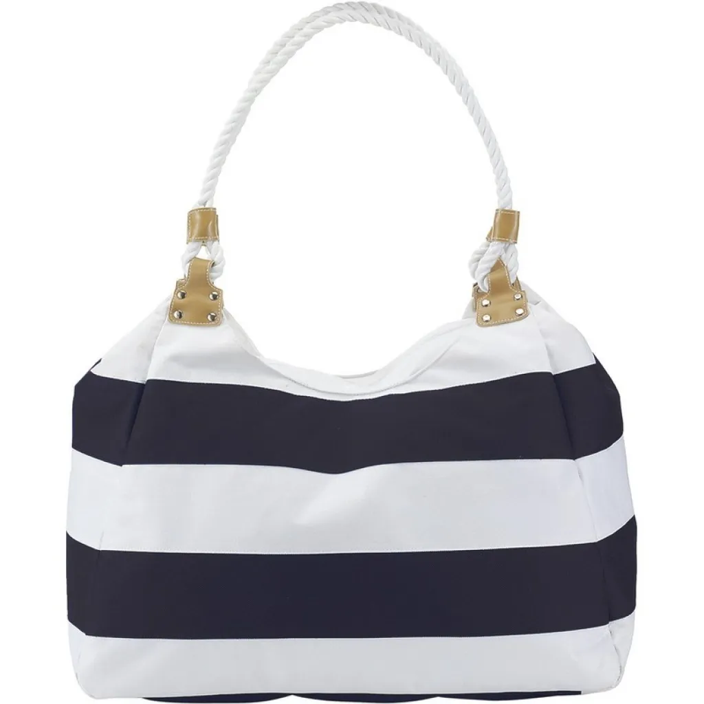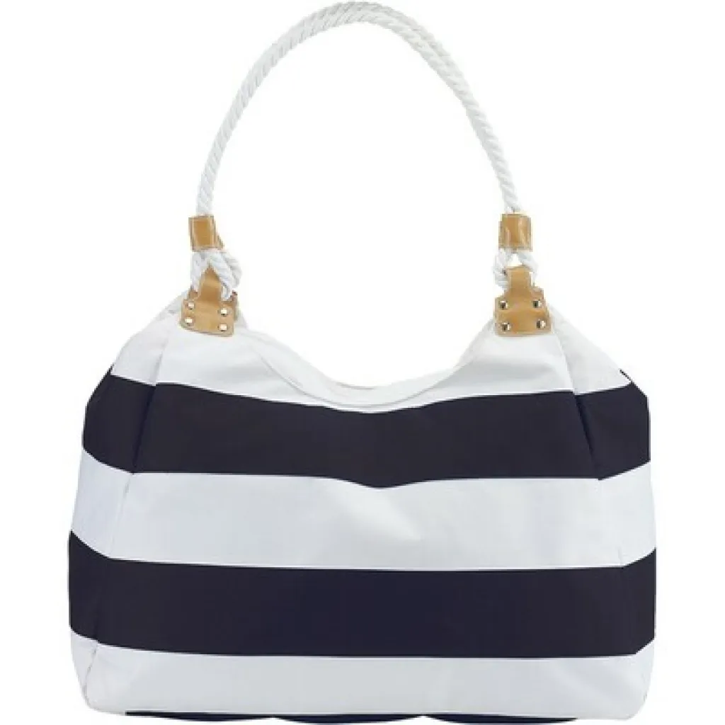 Torba za plažu s ručkama od užeta i zatavaranjem s patentnim zatvaračem.
