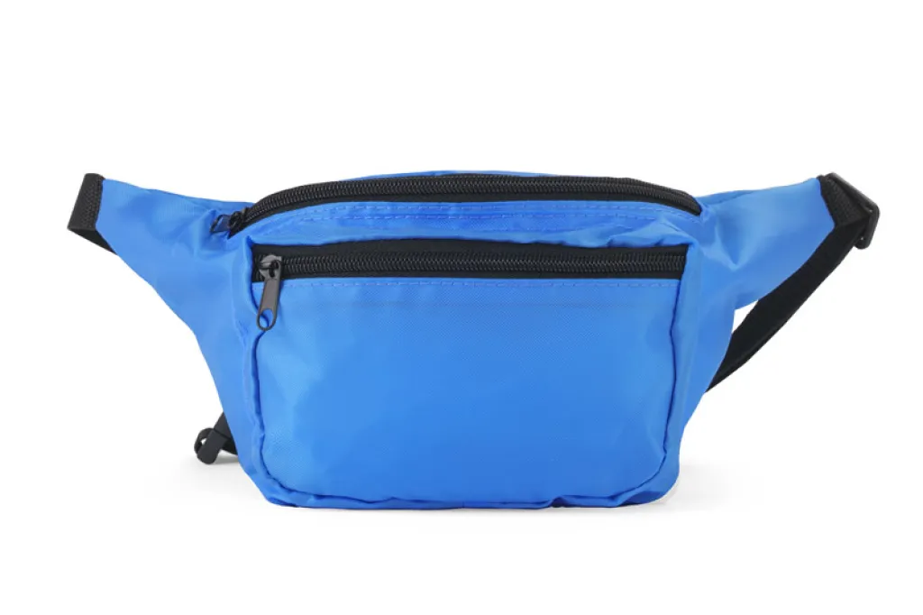 Pojasna torbica s 3 pretinca s patentnim zatvaračem (jednim većim i dva manja) i podesivim remenom s kopčom. Napravljena je od 300D poliestera s vodootpornim premazom.