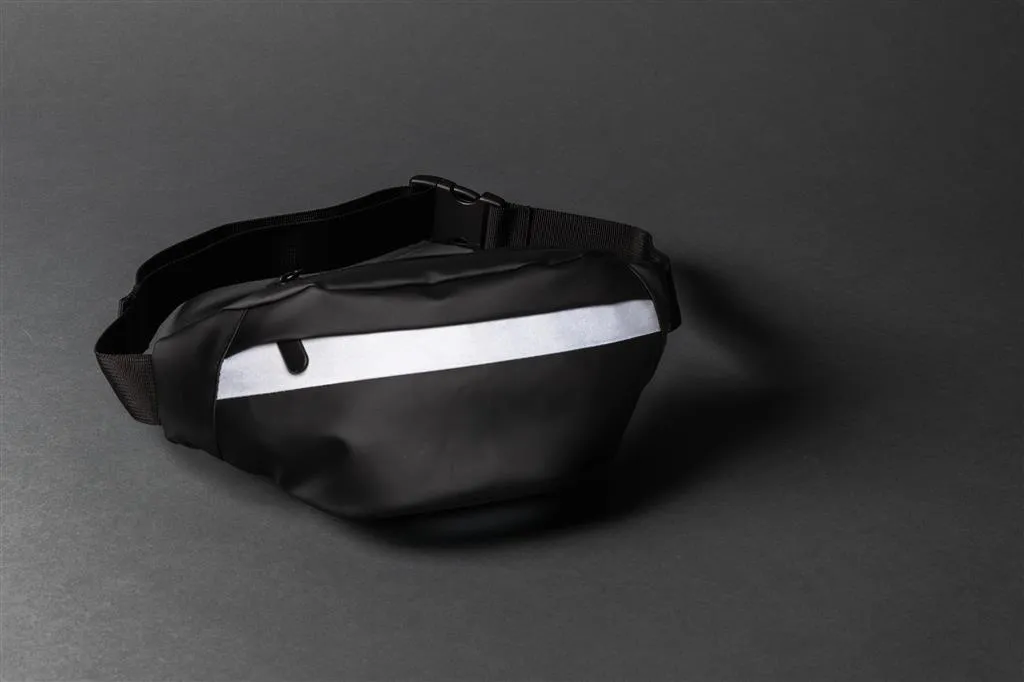 Ova PU torba idealne je veličine kada ne morate sa sobom ponijeti puno, samo vaše osnovne potrepštine. Napravljeno od modernog PU i hladne reflektirajuće trake neće vas ostaviti neprimijećenima noću. Reflektirajuća traka pruža vam i dodatnu sigurnost noću kako biste bili vidljivi u prometu. Sa skrivenim zatvaračem i podesivim remenom. Vodootporan. Refleksija je ispitana u skladu s EN 13356: 2001.