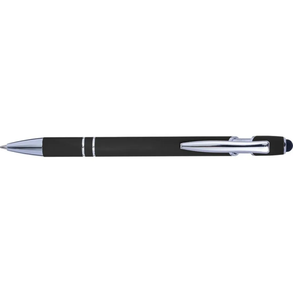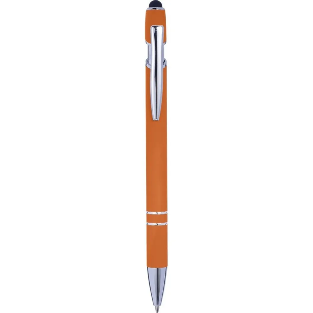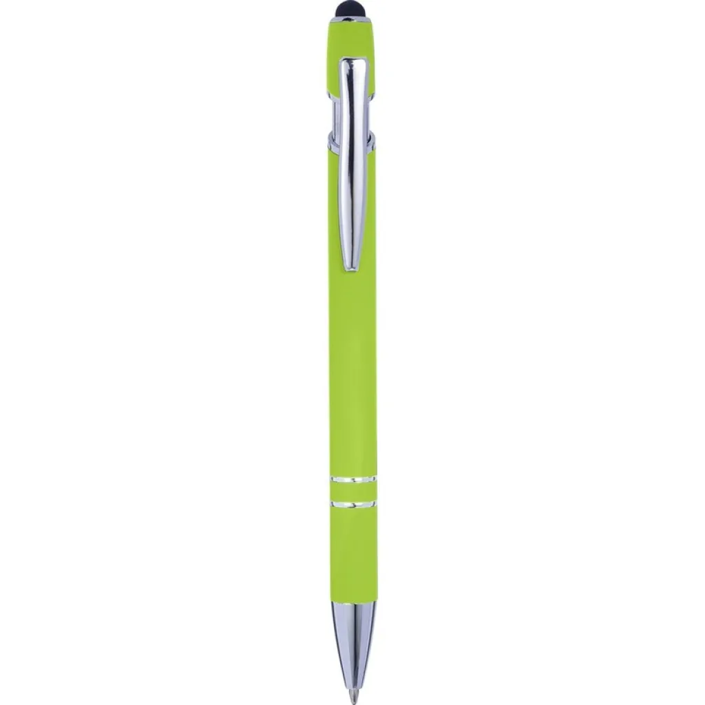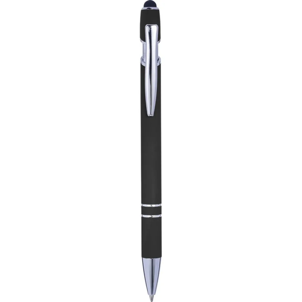 Touch kemijska olovka s gumiranom cijevi u boji i srebrnim dijelovima.