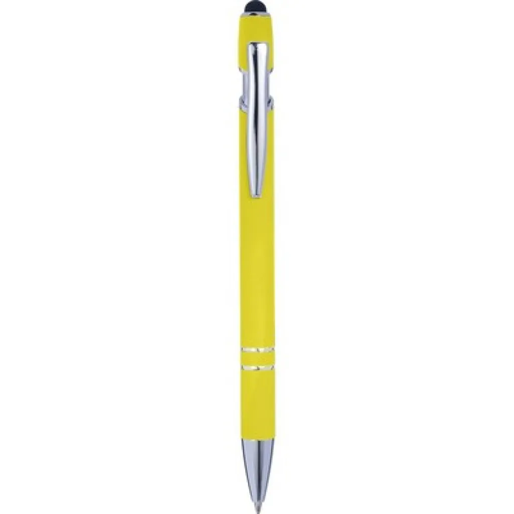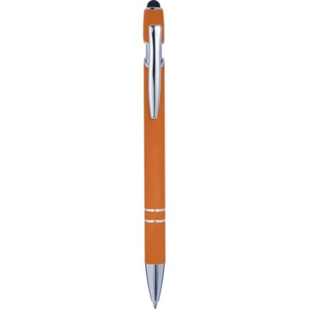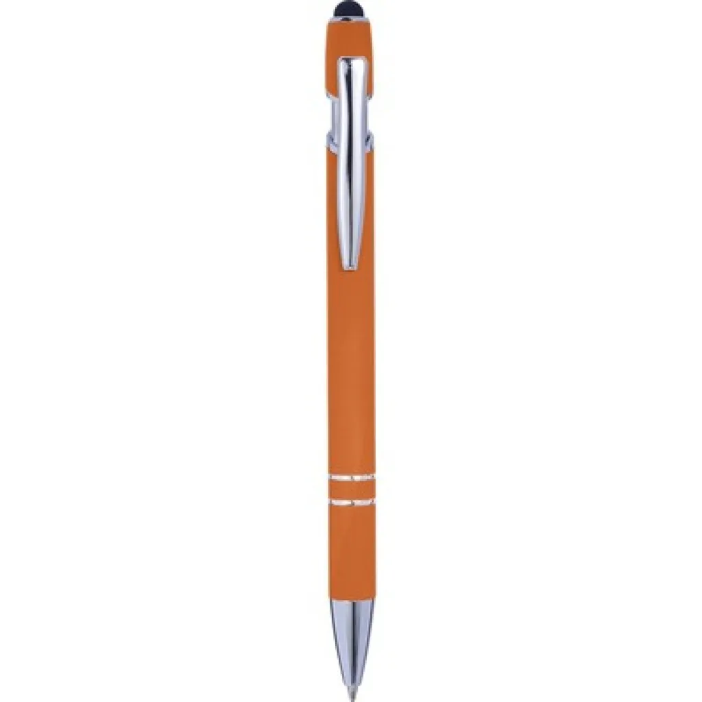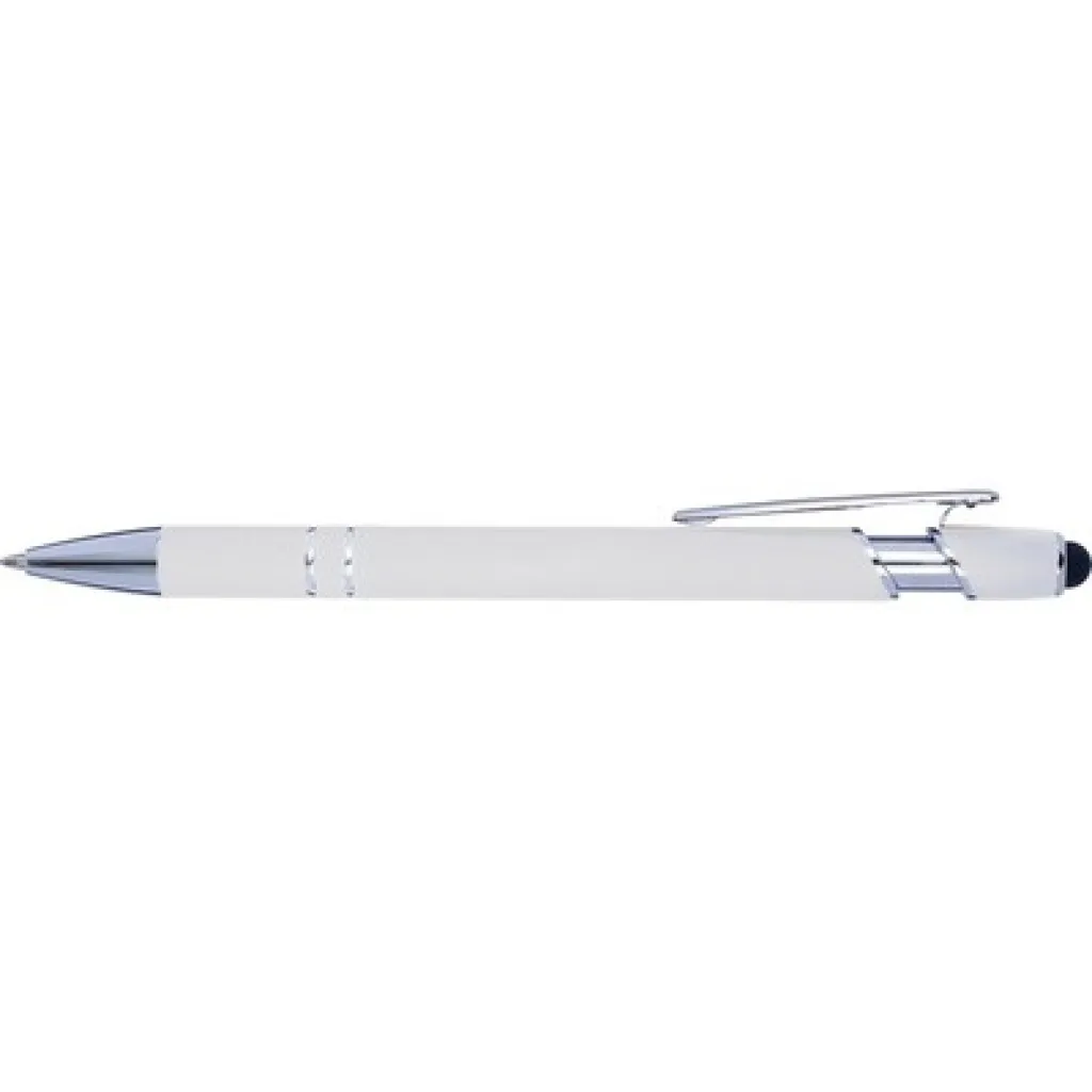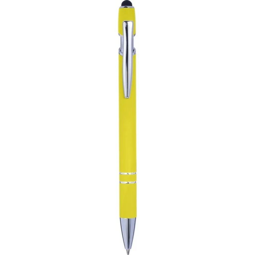 Touch kemijska olovka s gumiranom cijevi u boji i srebrnim dijelovima.