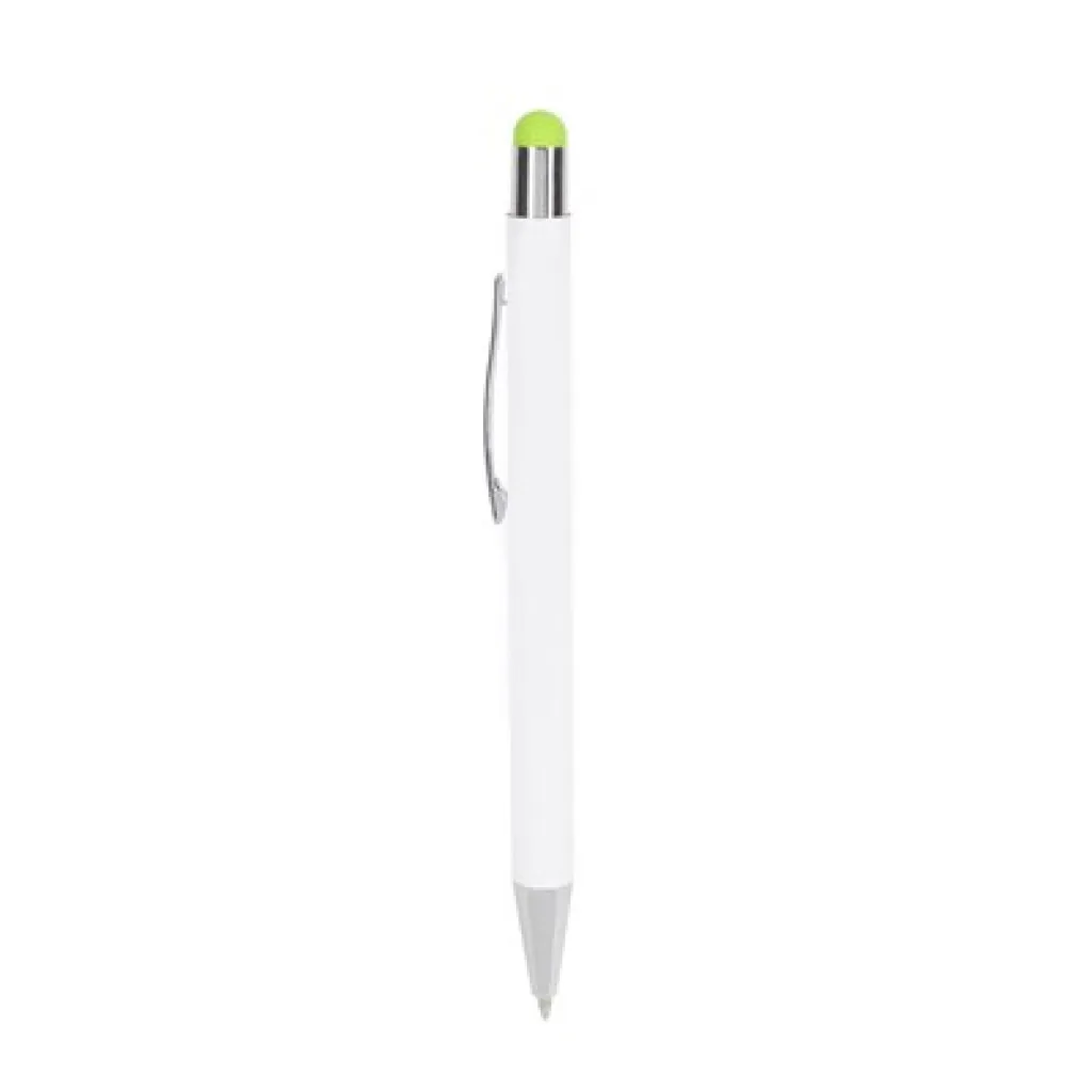 Touch kemijska olovka s bijelom cijevi. Nakon graviranja boja sjajne površine odgovara boji gumenog vrha.