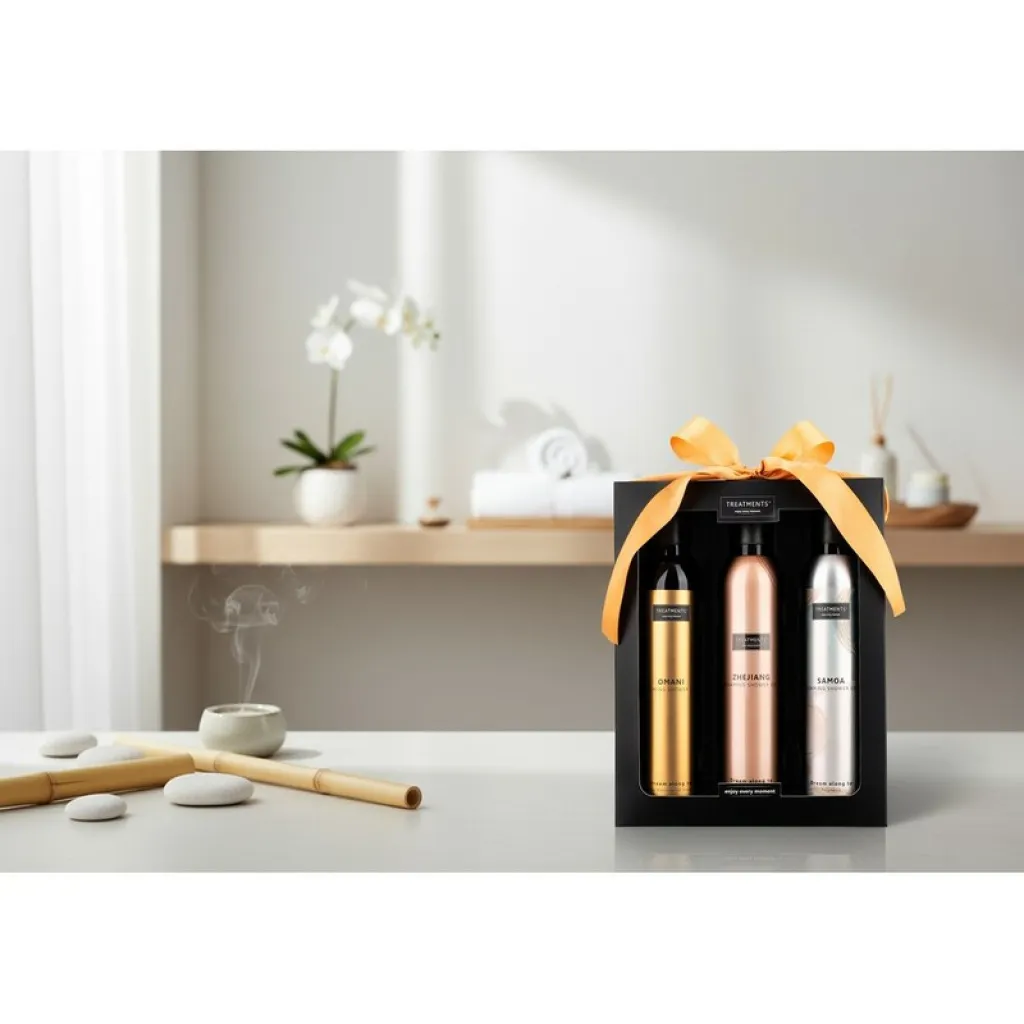 Beauty Foaming Extravagance TREATMENTS, set uključuje 3 pjenasta gela za tuširanje 200 ml, razni mirisi: Omani, Samoa, Zhejiang, savršeni za svakodnevnu njegu, gelovi su pakirani u elegantnoj papirnatoj kutiji.