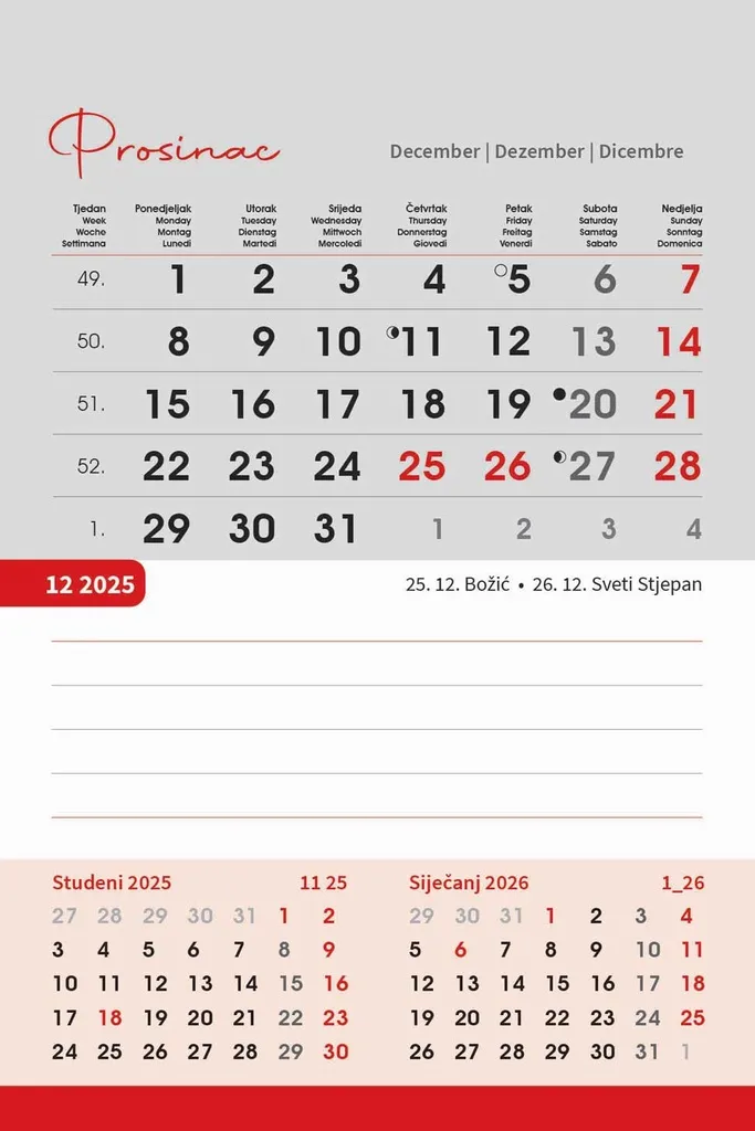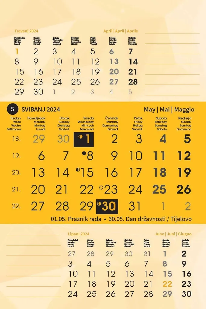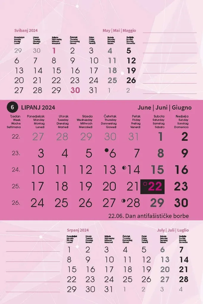 tisak: obostrani 4/4, na poleđini svakog lista se nalazi kalendar za cijelu godinu