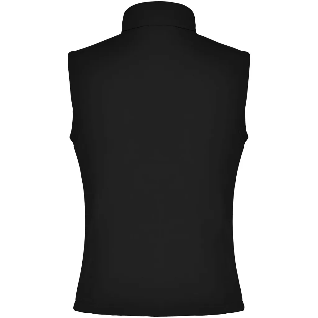 Dvoslojni softshell gilet. Kontrastni obrnuti zatvoreni patentni zatvarač sa štitnikom za bradu i potezačem. Tri džepa s kombiniranim patentnim zatvaračem s izvlakačem. Elastična vrpca i kopče na donjem rubu. Otporan na vodu. Model otporan na vjetar. Model je visok 184 cm i nosi veličinu L.