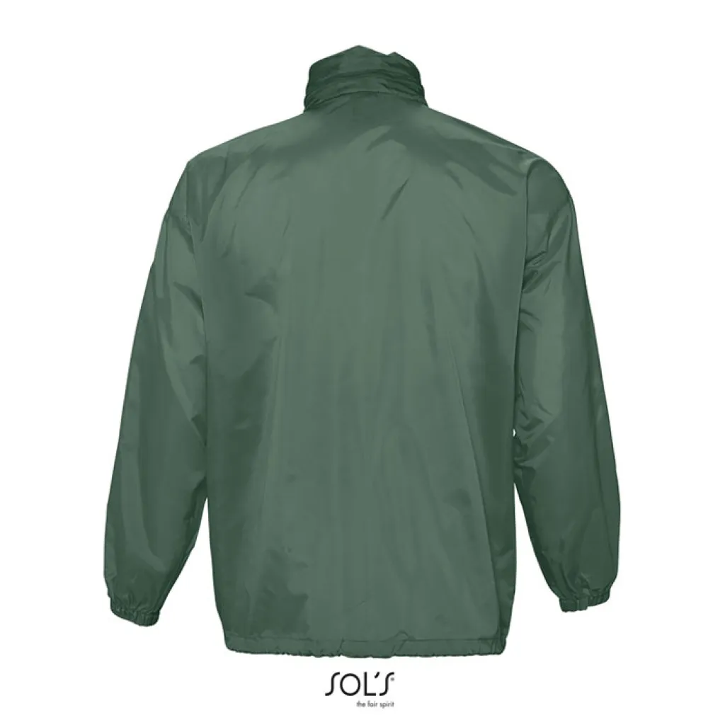 SOL'S SURF unisex vjetrovka s patentom. Jedna od najpovoljnijih vjetrovki na tržištu. Otporna na vjetar i vodu. Dva džepa s patentom, ovratnik s patentom i skrivenom kapuljačom. Uzica unutar ruba, elastični šavovi. Specifikacije: 210g/m² - 100% najlon 210T, vodootoporno.