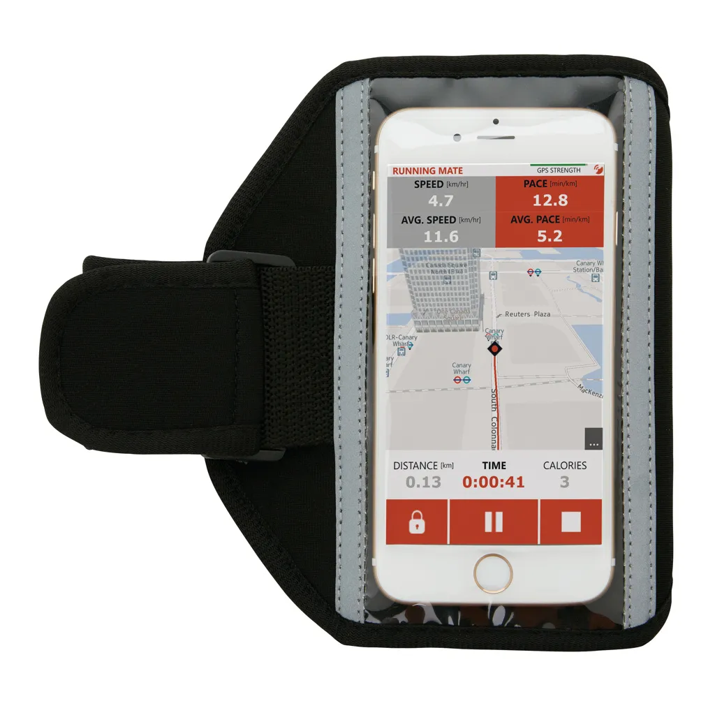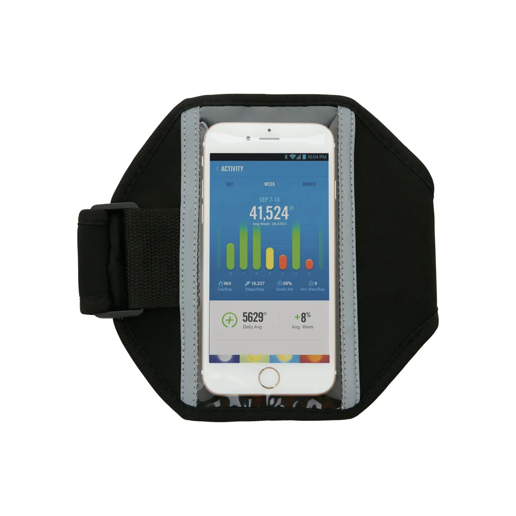Sportski povez za ruku od neopren materijala koji odgovara svim mobilnim telefonima kao što su Iphone 5, 6, 7, 8, X i Xs, Samsung S6, S7, S8 i S9 kako biste ih mogli ponijeti na trčanje ili druge aktivnosti. Prednja strana ima reflektirajuću traku oko pretinca za mobitel za dodatnu vidljivost u mraku. Čičak traka se može prilagoditi različitim veličinama.