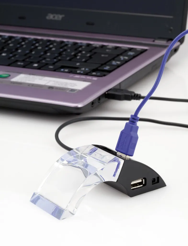 USB hub s 4 ulaza i višebojnim LED osvjetljenjem. Proizvod marke Antonio Miro.