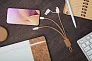 Kabel za punjenje od prirodnog pluta i ekološke pšenične slame s mikro USB, USB-C i Lightning konektorima. S USB i USB-C ulazima.