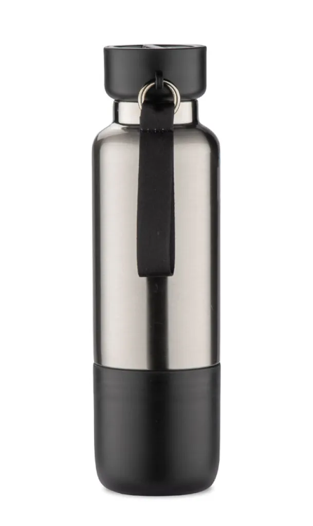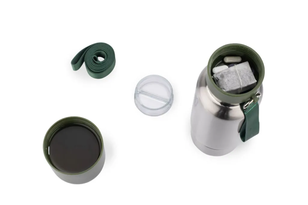 Termo boca RON izvrstan je izbor za aktivne ljude koji cijene i praktičnost i funkcionalnost. Bit će idealna za treninge i spontane izlaske. Boca je opremljena karabinerom i dvije vezice: kratkom i dugom vezicom naizmjenično, što omogućuje udobno nošenje i laku prilagodbu različitim situacijama. Jednostavno je nosite na zapešću dok trčite ili je objesite na leđa kada planinarite. Osim toga, RON boca ima zatvarač s praktičnim pretincem za male stvari (poput tableta ili dodataka prehrani). Jedinstvena plastična baza, koja postaje dodatna šalica kada se odvrne, eliminira rizik od opekotina jezika i omogućuje ugodnije piće.