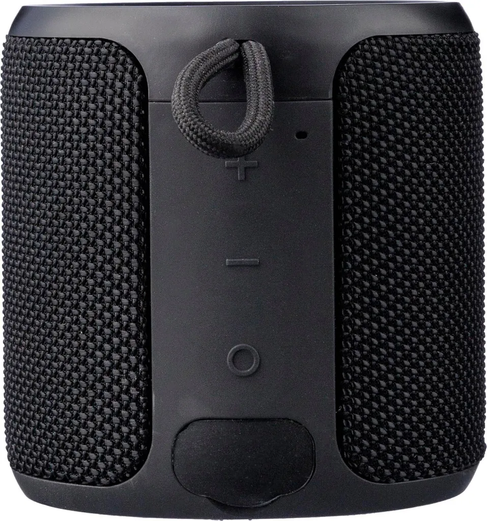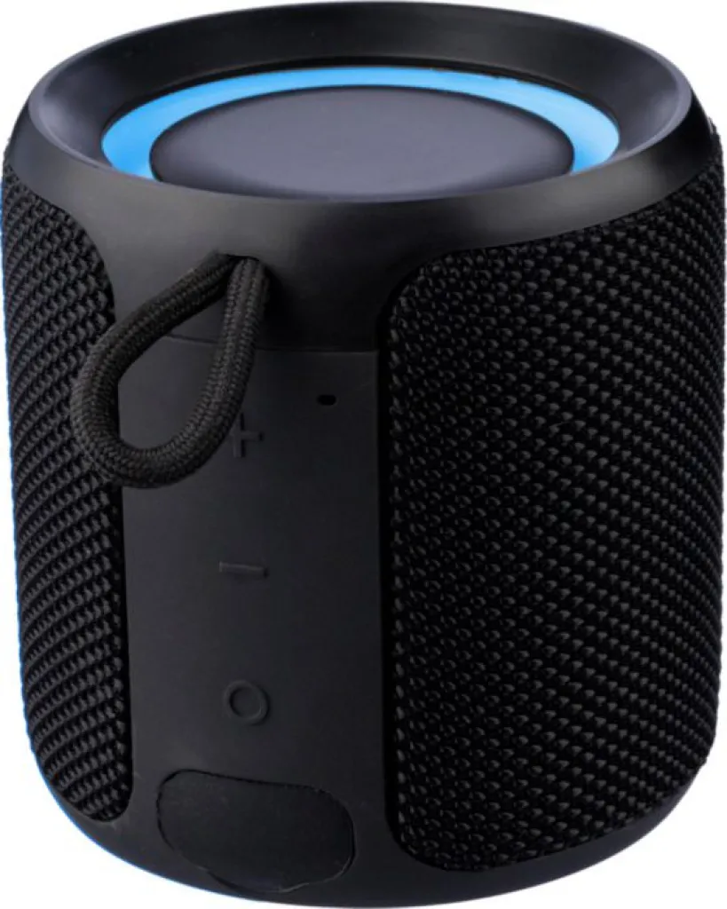 Vanjski zvučnik koji mijenja boju, izrađen od recikliranog ABS-a i tkanine, s vezicom za zapešće. IPX6 ocjena. Izlazna snaga 10 W, ulaz DC 5 V, ugrađena punjiva baterija od 1200 mAh, s 4 sata vremena reprodukcije. Radna udaljenost 15-20 metara, odnos signal/šum 75 dB. Frekvencijski raspon: 100 Hz do 15 kHz. Uključuje 30 cm Type-C kabel za punjenje. Tehnologija bežičnog povezivanja: 5.1. Povežite dva zvučnika putem TWS-a. Dolazi pojedinačno pakiran u smeđoj kartonskoj kutiji.