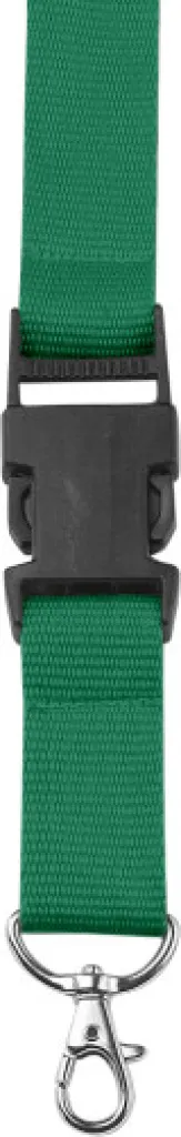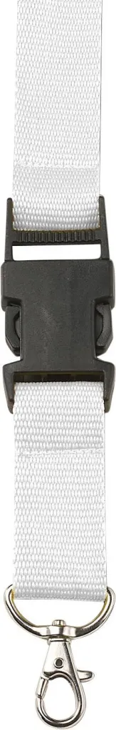 Poliesterska vezica s plastičnom sigurnosnom kopčom i metalnim držačem za ključeve.