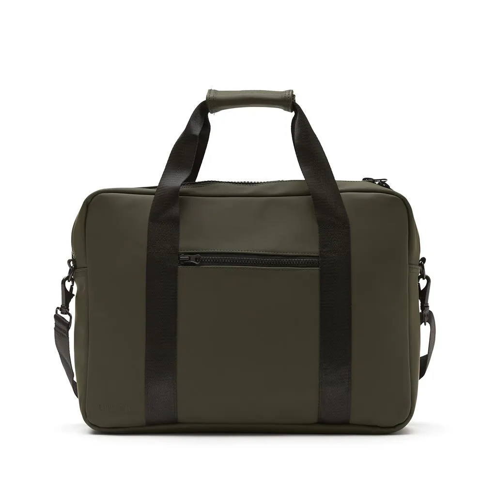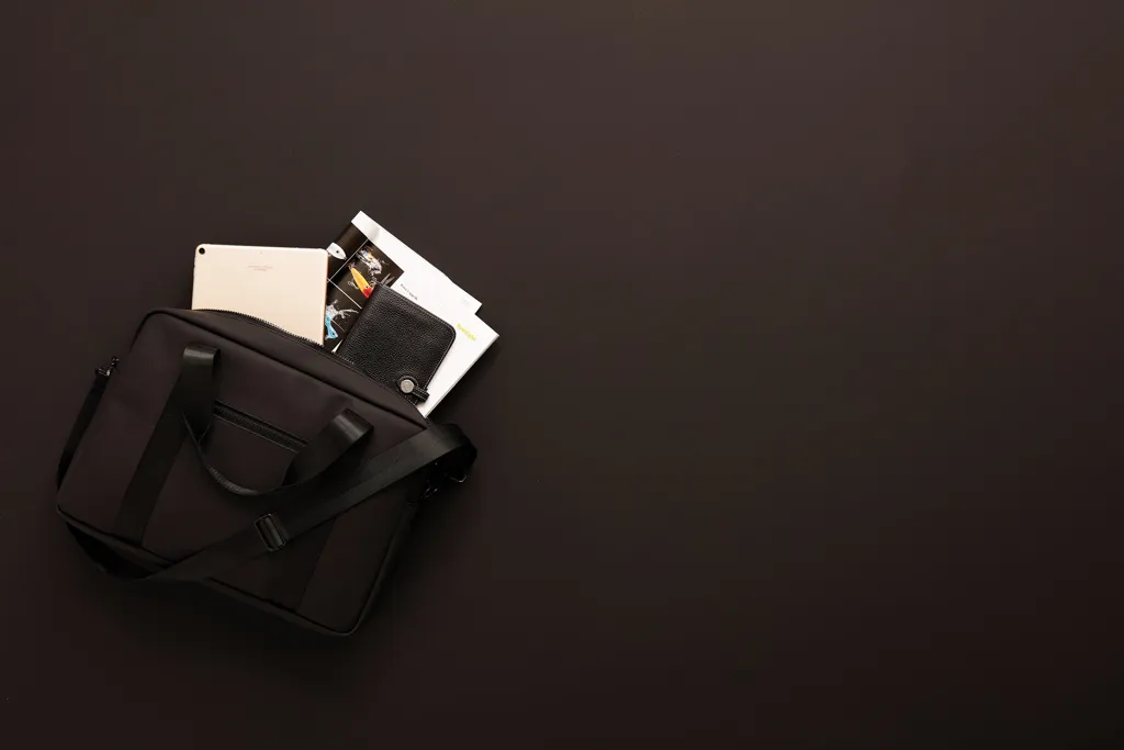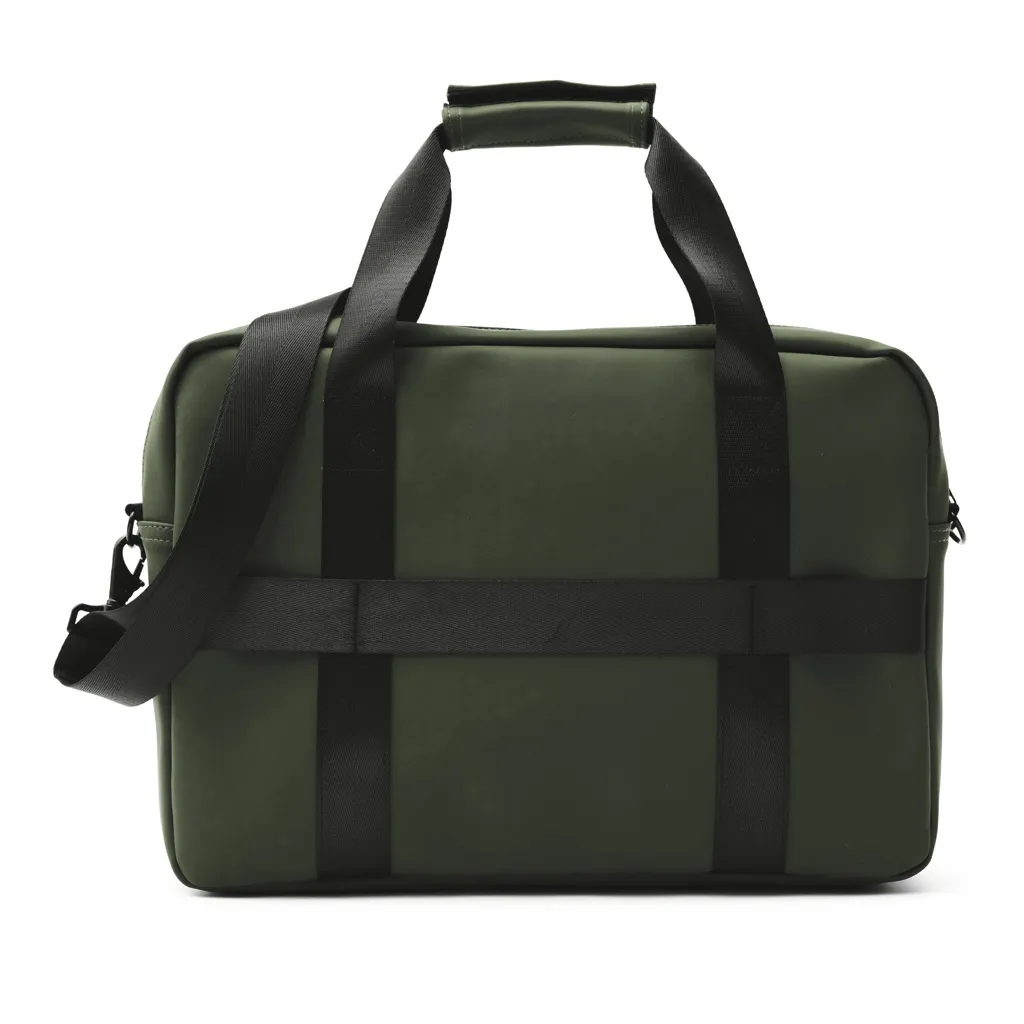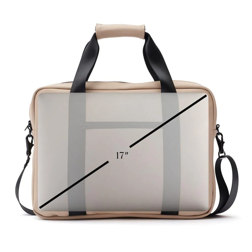 Torba za laptop modernog dizajna i čistih linija. Funkcije i oblik dolaze zajedno, osim običnog pretinca za laptop, ova torba također ima mjesta za olovke, dokumente i druge stvari. Torba je izrađena od vodootpornog materijala, s naramenicom i ručkama za nošenje. Također uključuje pričvršćenu traku na stražnjoj strani, tako da odgovara vašem koferu kada putujete.