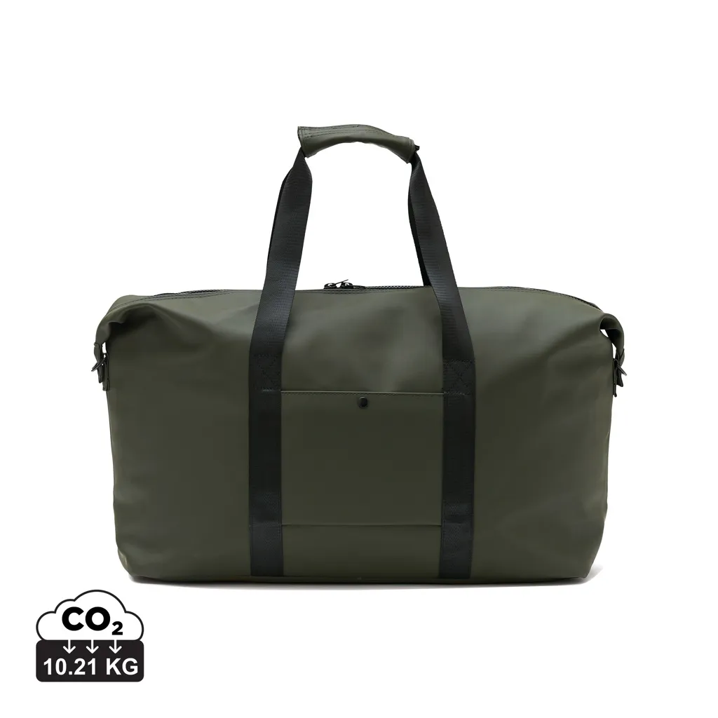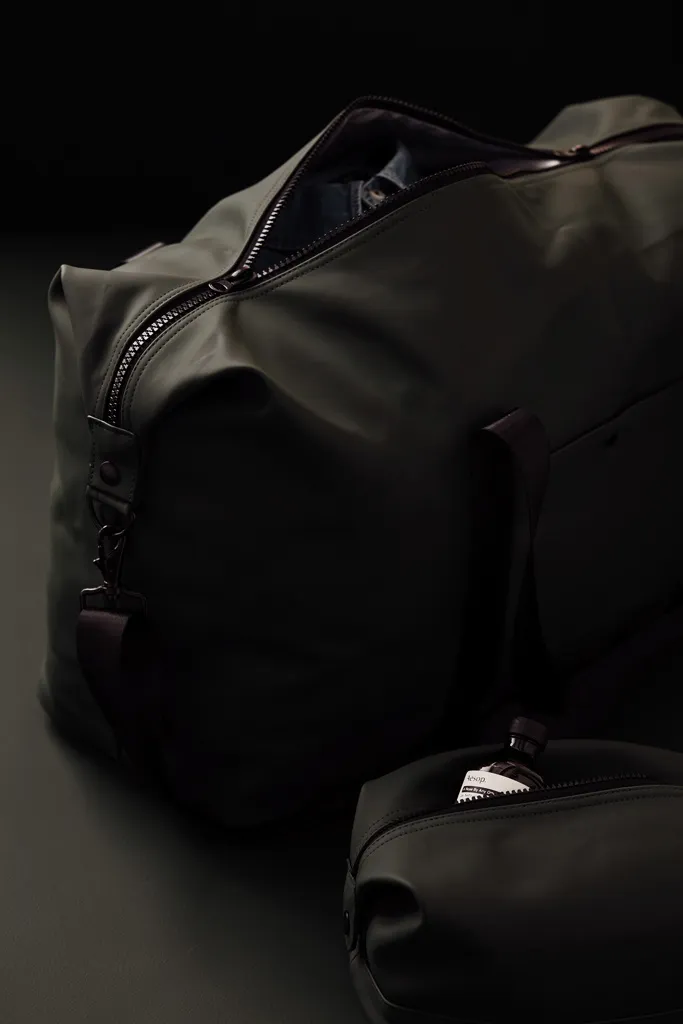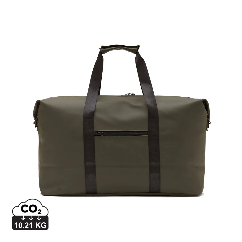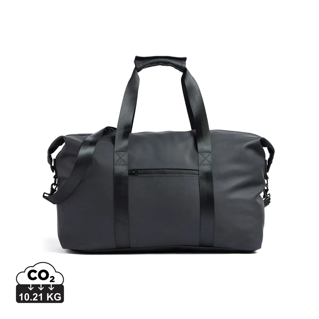 Nećete proći nezapaženo s ovom prostranom vikend torbom preko ramena jer je istovremeno moderna i minimalistična. Torba ima podesivi remen, tako da možete udobno putovati bez obzira radi li se o poslu ili odmoru. Kako bi se omogućila bolja organizacija, torba je opremljena džepom s patentnim zatvaračem s jedne strane i malim džepom s pritisnim gumbom s druge strane. Izrađena od veganske nubuck kože koja torbi daje vodoodbojna svojstva.
