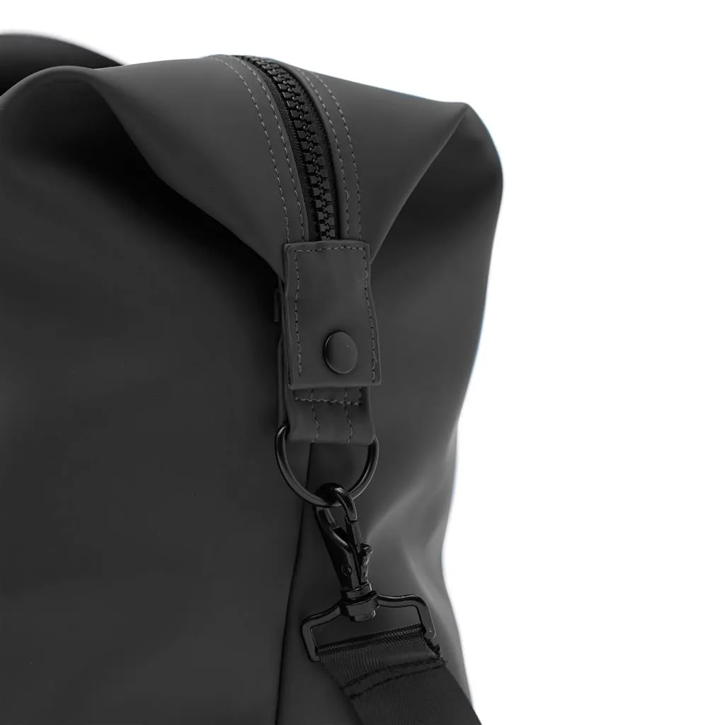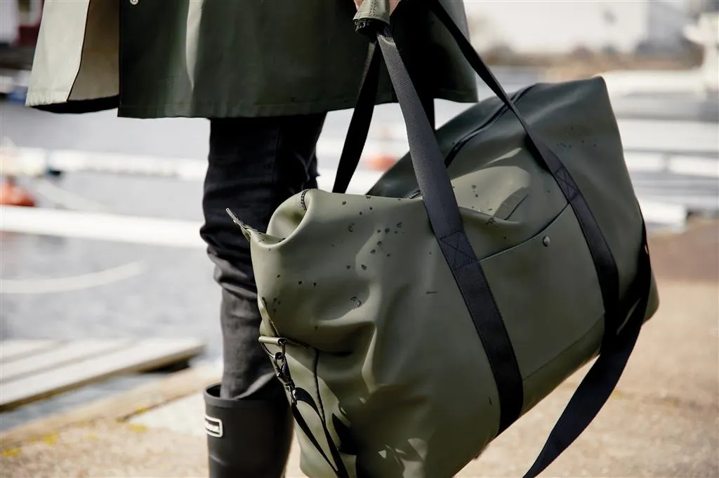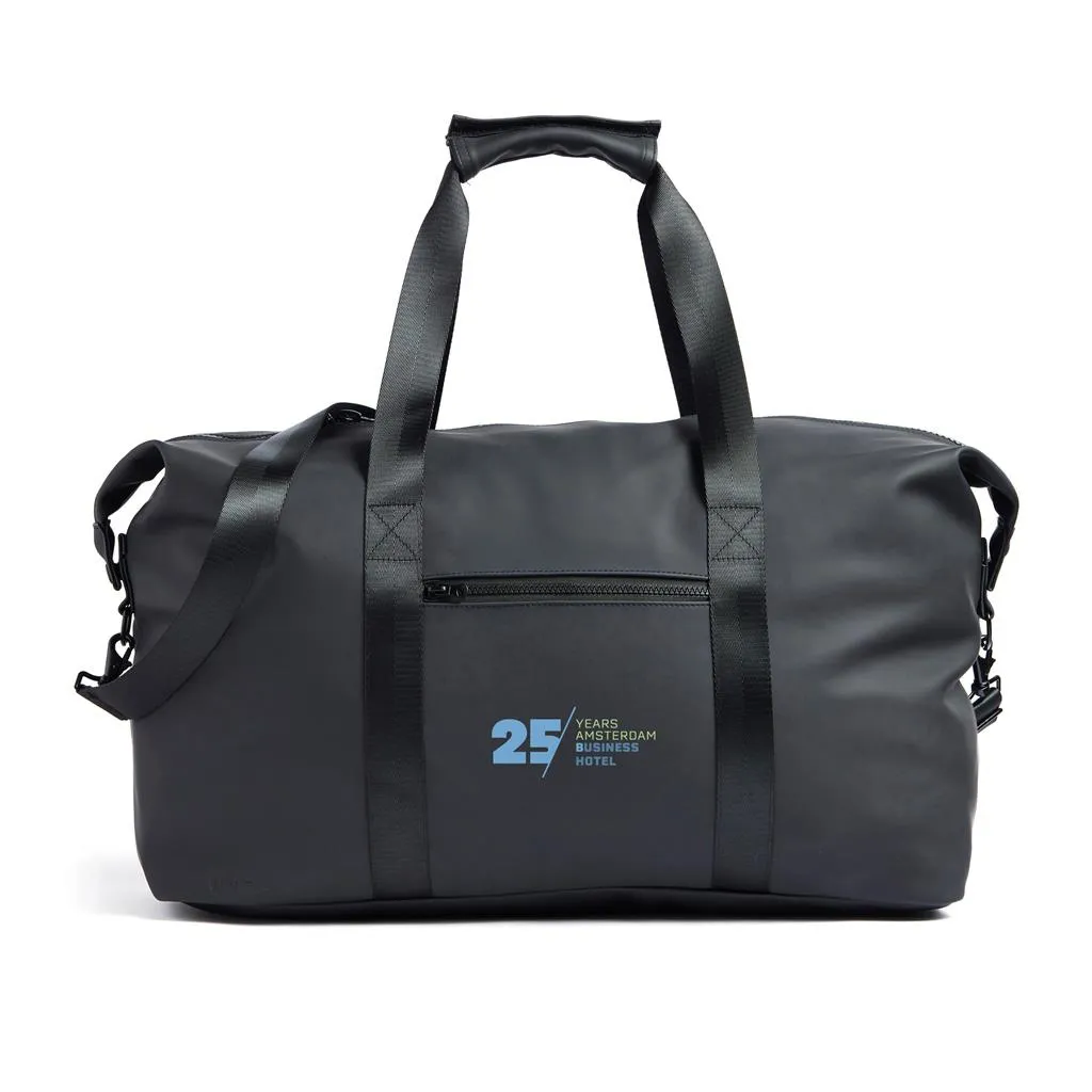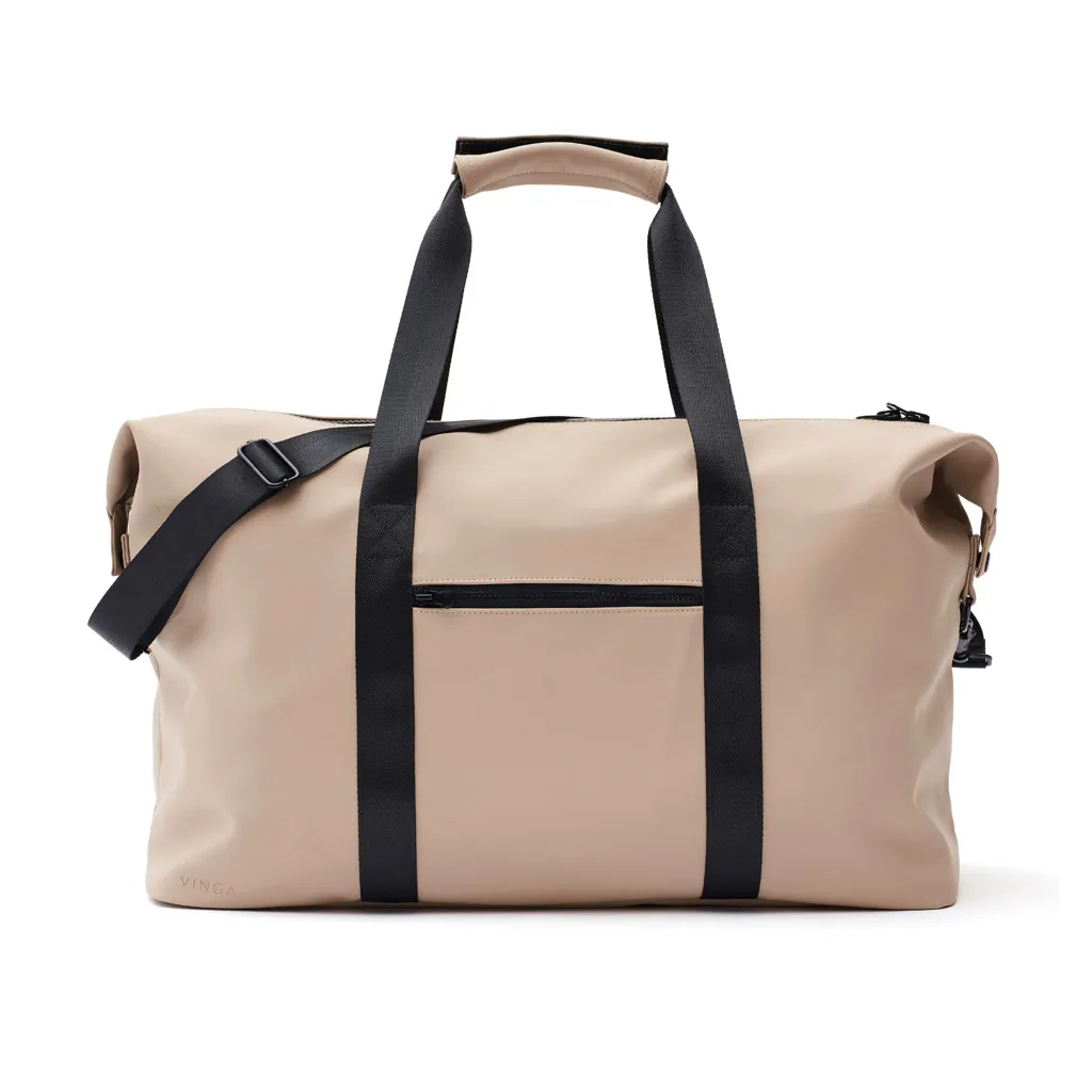 Nećete proći nezapaženo s ovom prostranom vikend torbom preko ramena jer je istovremeno moderna i minimalistična. Torba ima podesivi remen, tako da možete udobno putovati bez obzira radi li se o poslu ili odmoru. Kako bi se omogućila bolja organizacija, torba je opremljena džepom s patentnim zatvaračem s jedne strane i malim džepom s pritisnim gumbom s druge strane. Izrađena od veganske nubuck kože koja torbi daje vodoodbojna svojstva.