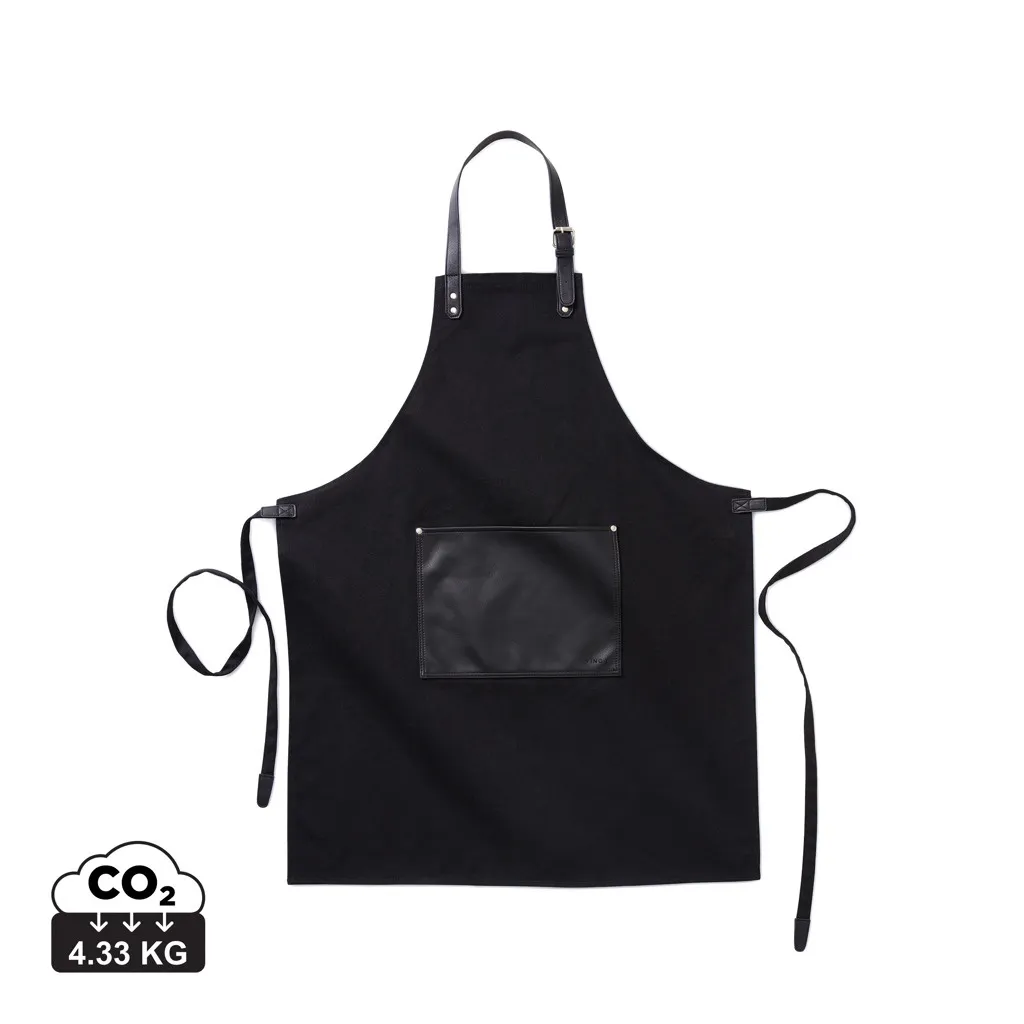 Elegantna i klasična pregača od debelog pamučnog platna s diskretnim detaljima od veganske kože. Podesiva kopča na vrhu i veliki džep sprijeda. Pregača s dugim vijekom trajanja koja s vremenom postaje samo ljepša.