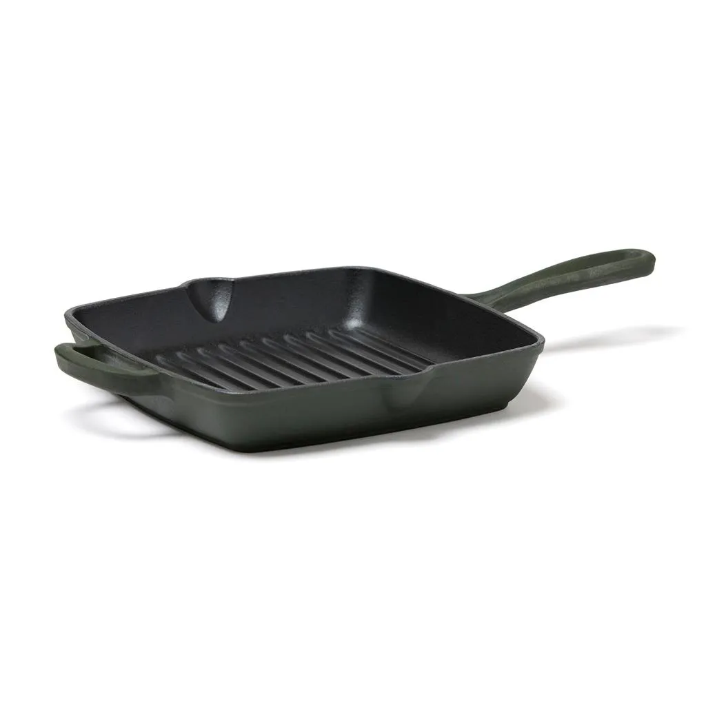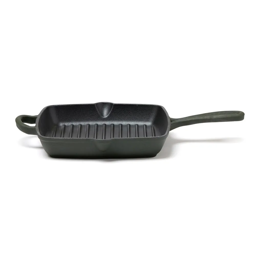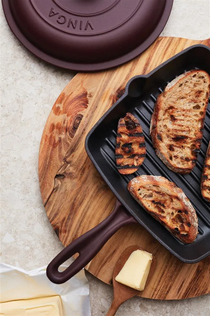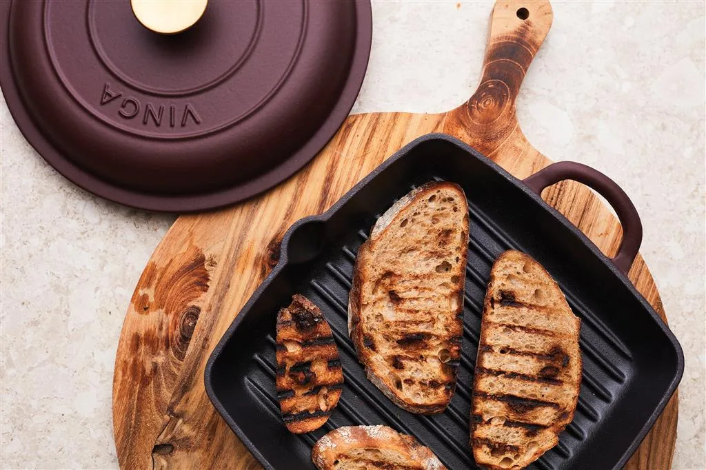 Klasična emajlirana grill tava od lijevanog željeza s rešetkom koja podiže sadržaj i proizvodi neizravnu toplinu, slično roštilju. Ovaj dizajn također omogućuje učinkovito otjecanje masnoće, sprječavajući kuhanje hrane u višku masnoće. Materijal od lijevanog željeza osigurava ravnomjernu raspodjelu topline po cijeloj tavi i omogućuje joj da zadrži toplinu dulje vrijeme. Izdržljivost tave omogućuje da se koristi na različitim izvorima topline, uključujući u pećnicu što je čini idealnom za održavanje topline hrane dulje vrijeme.