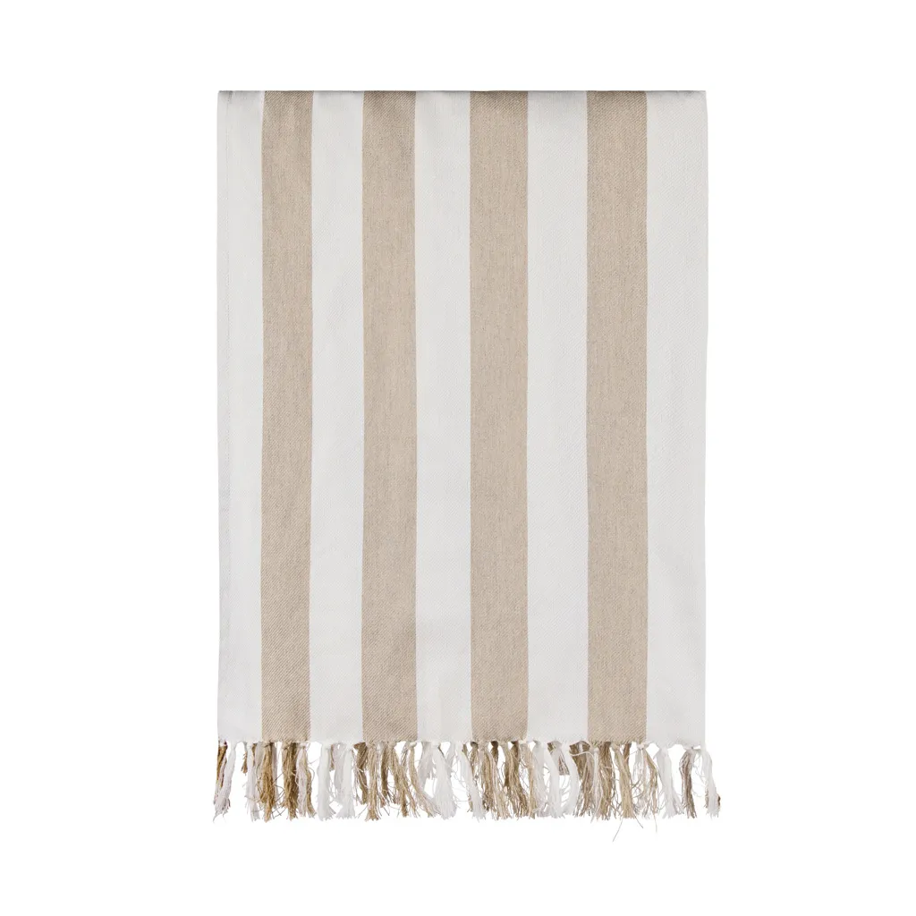 Ovaj obiteljski hamam ručnik za plažu ima klasičan dvobojni prugasti uzorak s resama na kratkim stranicama. Sa svojih velikodušnih 180 × 180 cm, savršen je za dijeljenje s voljenima, bilo da se opuštate na plaži ili se odmarate uz bazen. Izrađen od lagane i prozračne mješavine od 200 g/m², kombinira udobnost pamuka s prednostima brzog sušenja poliestera. Certificiran od strane GRS-a (Global Recycled Standard), GRS certifikat jamči da je cijeli lanac opskrbe recikliranim materijalima certificiran. Ukupni sadržaj recikliranih materijala temelji se na ukupnoj težini proizvoda. Ovaj proizvod sadrži 70% GRS certificiranog recikliranog pamuka i 29% GRS certificiranog recikliranog poliestera.