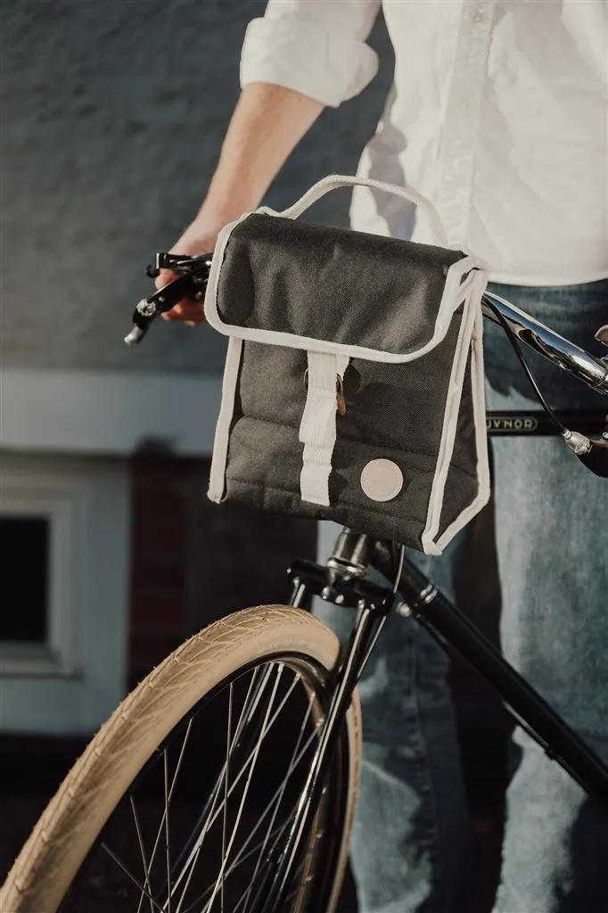 Ova moderna, elegantna rashladna torba savršena je za vaše izlete. Izrađena je od 50% recikliranog materijala od PET boca. Unutrašnjost se lako može obrisati, a gusta PEVA podstava drži torbu hladnom dugo vremena. S čičak zatvaračem na stražnjoj strani torbe možete je pričvrstiti za upravljač bicikla. Torba također ima podesivi pokrov osiguravajući optimalnu izolaciju od hladnoće svaki put.